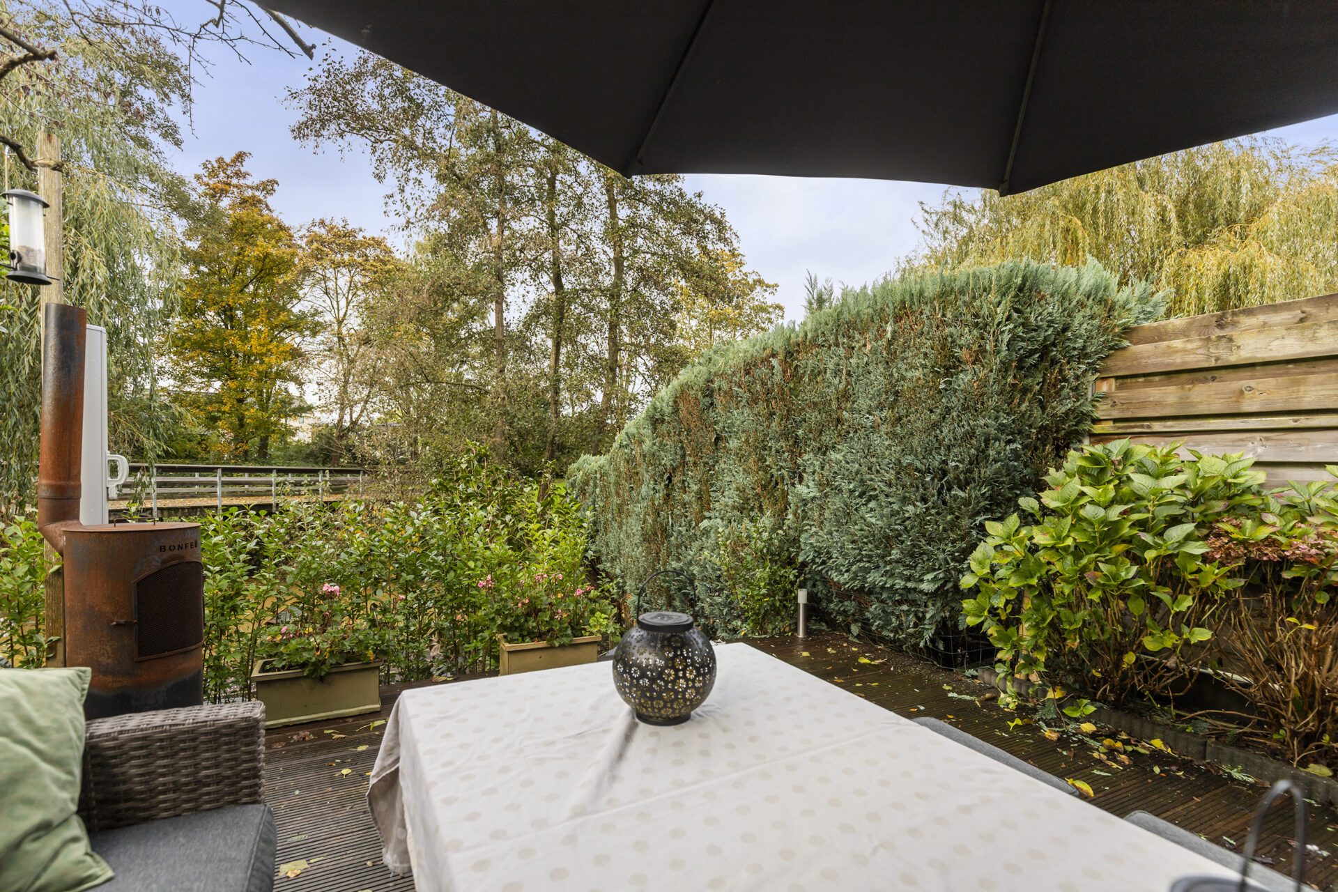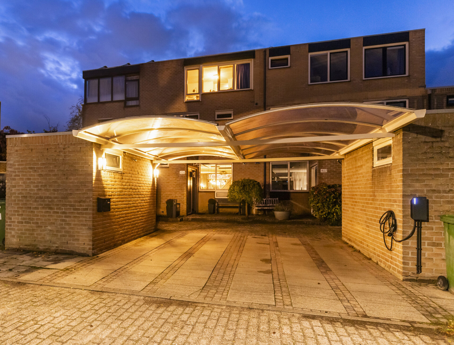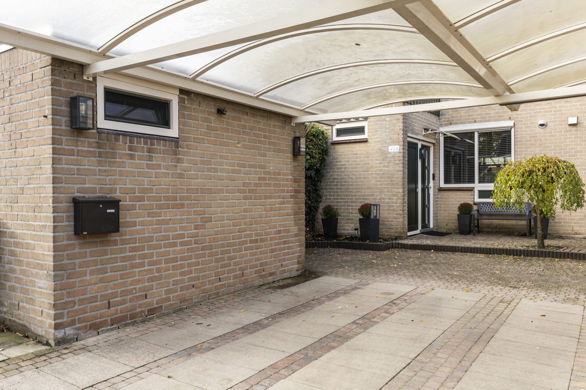 De voortuin is netjes betegeld en voorzien van carport waardoor je kan parkeren op eigen terrein. Ook heb je via de voortuin toegang tot de berging.