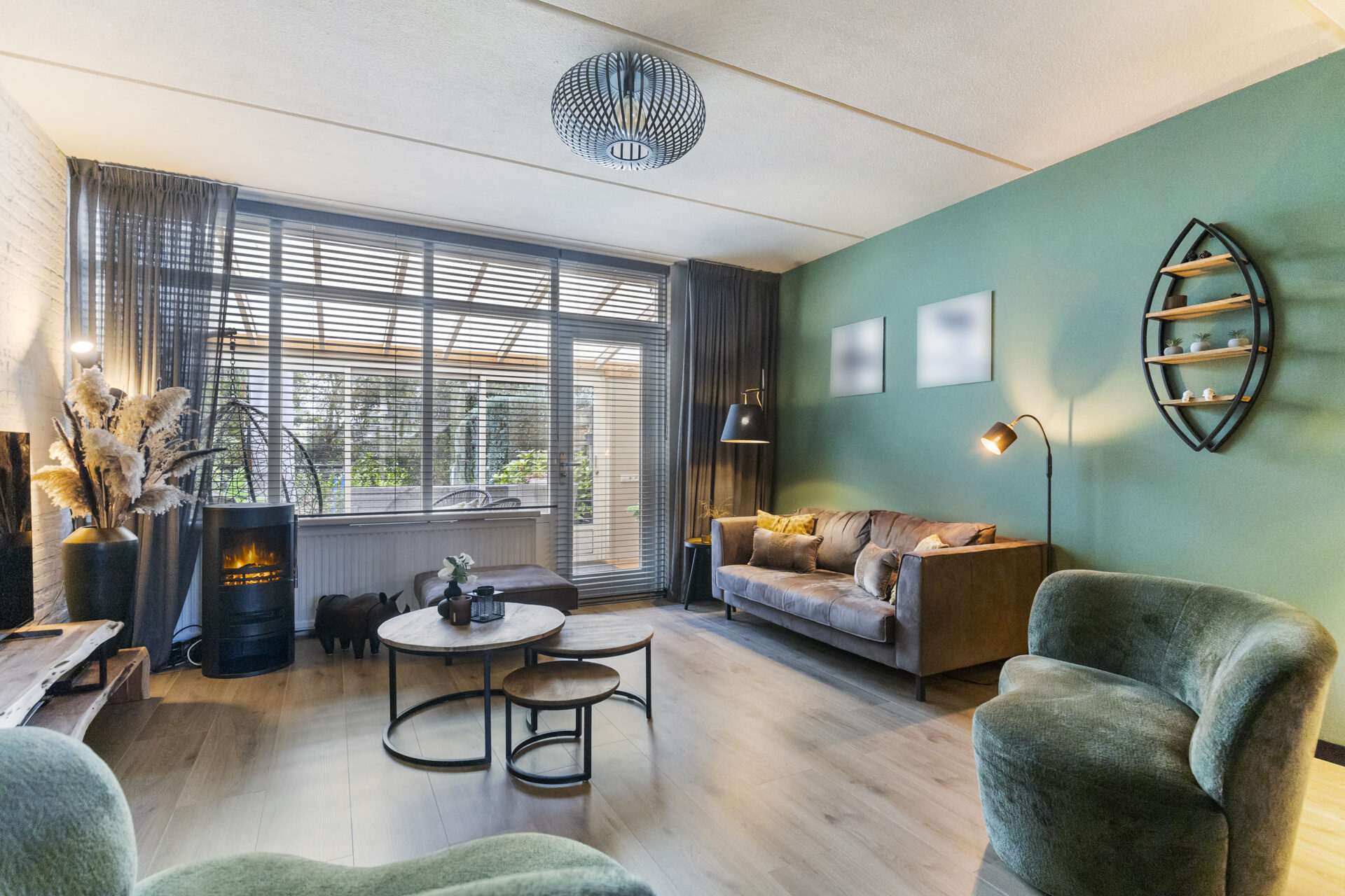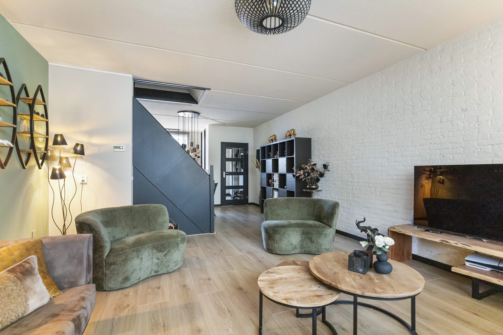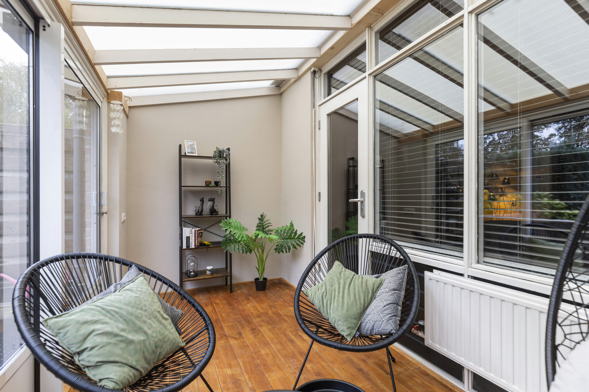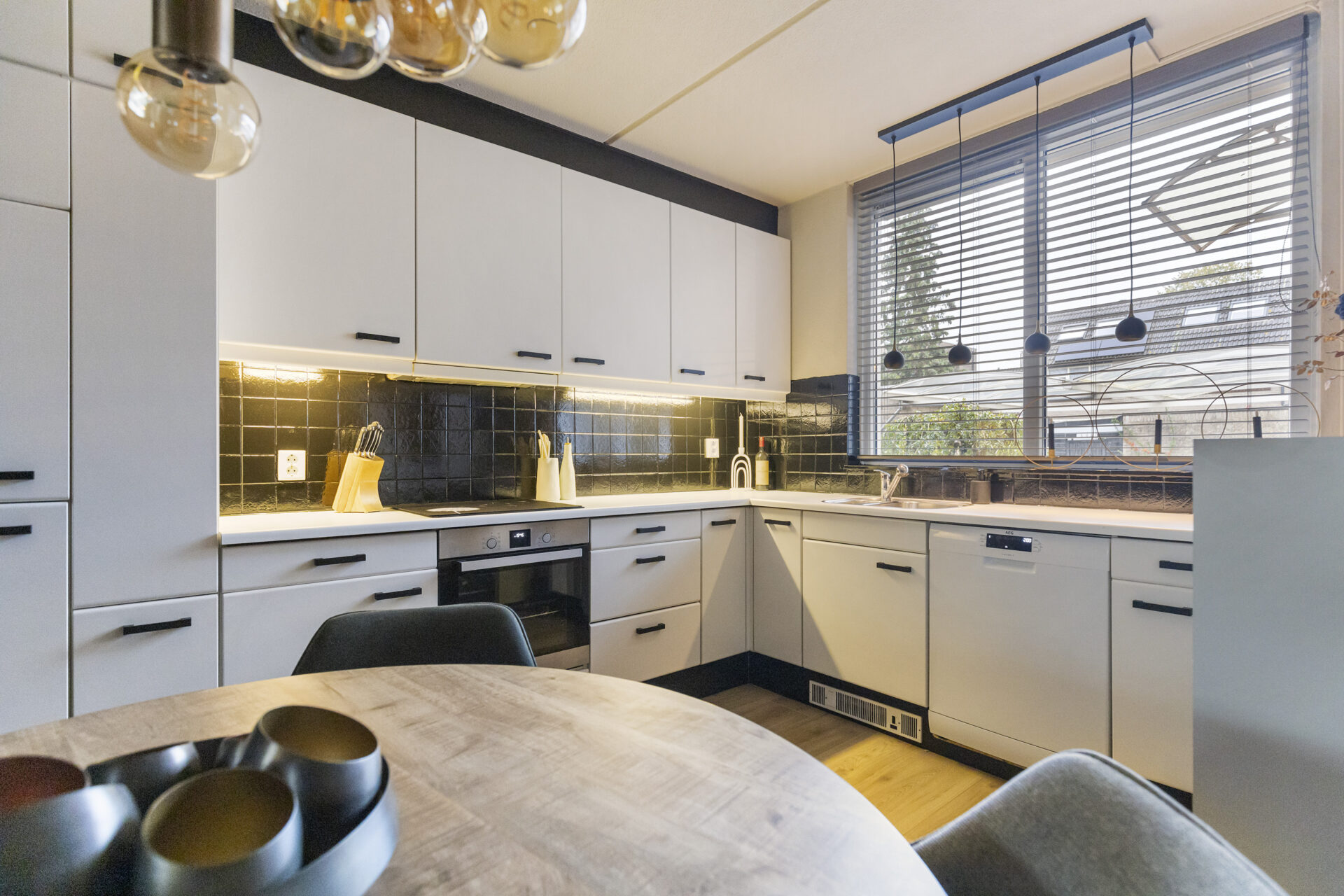 Binnenkomst in een verruimde hal/entree met toegang tot modern zwevend toilet met fontein. De meterkast bevindt zich aan de buitenzijde naast de voordeur. Vanuit de hal loop je de woonkamer met open keuken binnen. De woonkamer is tuingericht gelegen en ruim van formaat. De woonkamer heeft mooie grote raampartijen en een aangebouwde tuinkamer waardoor er nog meer ruimte en licht is ontstaan. De woonkamer, keuken en hal zijn recent dit jaar nog voorzien van een nieuwe laminaatvloer en plinten. Op warme dagen kun je heerlijk de deur openzetten en de tuinkamer bij de zitkamer betrekken. De gezellige en diepe achtertuin is gelegen op het westen. De tuin is netjes aangelegd en er zijn op verschillende niveau's zitjes gecreëerd. De keuken is aan de voorzijde in hoekopstelling geplaatst. De keuken is voorzien van diverse inbouwapparatuur. De trapopgang naar de eerste verdieping bevindt zich tussen de woonkamer en keuken in.