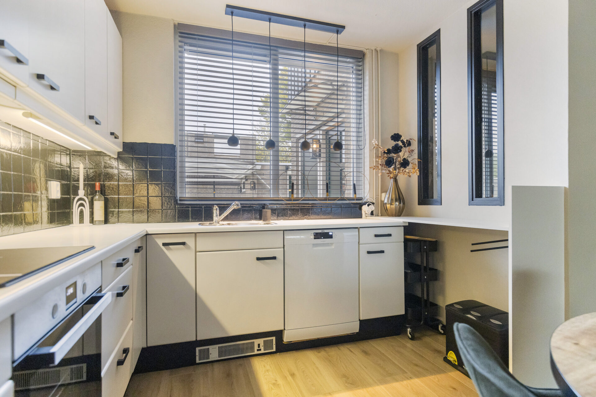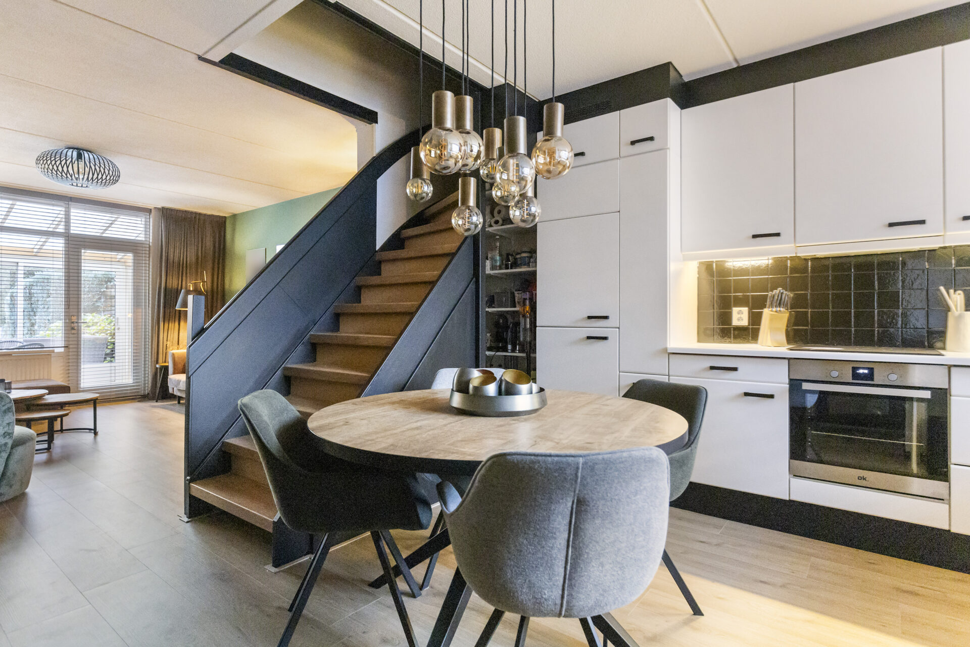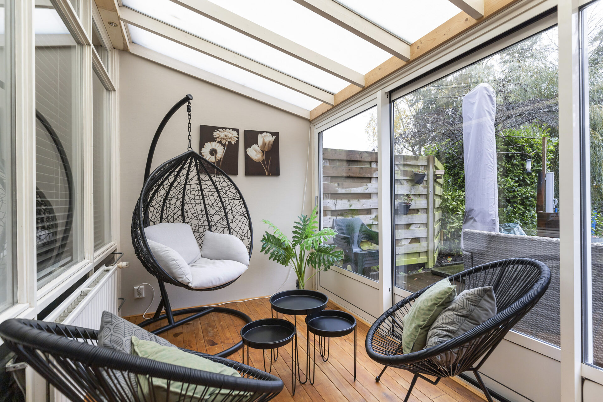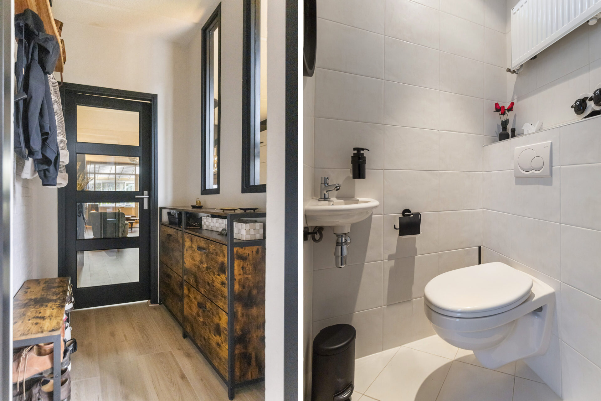 Binnenkomst in een verruimde hal/entree met toegang tot modern zwevend toilet met fontein. De meterkast bevindt zich aan de buitenzijde naast de voordeur. Vanuit de hal loop je de woonkamer met open keuken binnen. De woonkamer is tuingericht gelegen en ruim van formaat. De woonkamer heeft mooie grote raampartijen en een aangebouwde tuinkamer waardoor er nog meer ruimte en licht is ontstaan. De woonkamer, keuken en hal zijn recent dit jaar nog voorzien van een nieuwe laminaatvloer en plinten. Op warme dagen kun je heerlijk de deur openzetten en de tuinkamer bij de zitkamer betrekken. De gezellige en diepe achtertuin is gelegen op het westen. De tuin is netjes aangelegd en er zijn op verschillende niveau's zitjes gecreëerd. De keuken is aan de voorzijde in hoekopstelling geplaatst. De keuken is voorzien van diverse inbouwapparatuur. De trapopgang naar de eerste verdieping bevindt zich tussen de woonkamer en keuken in.