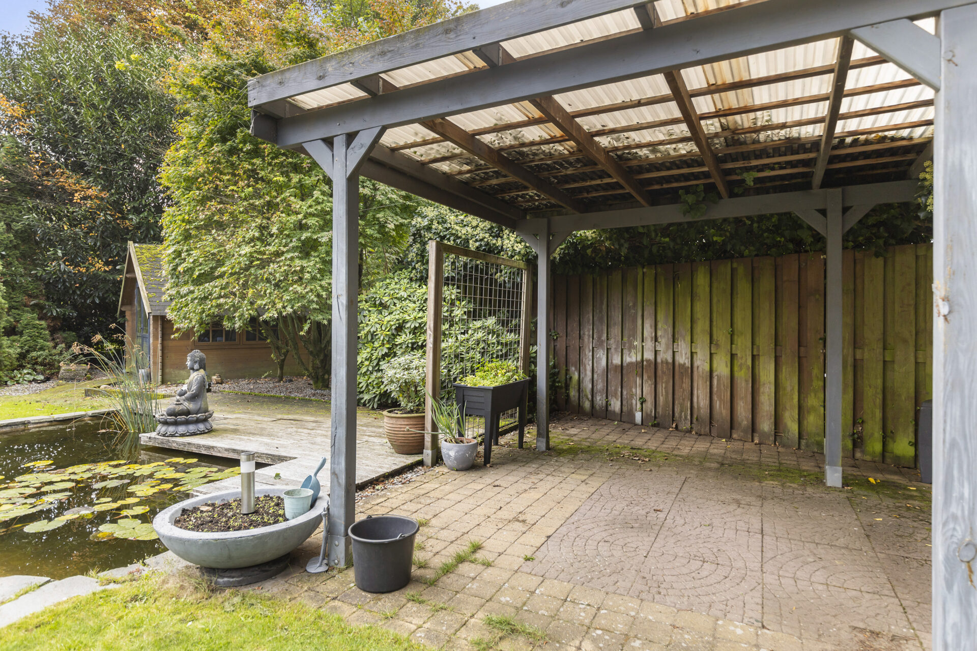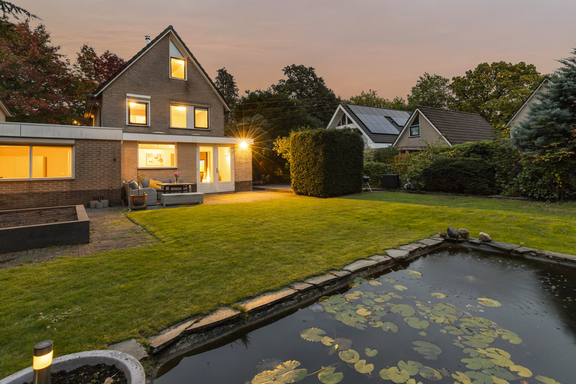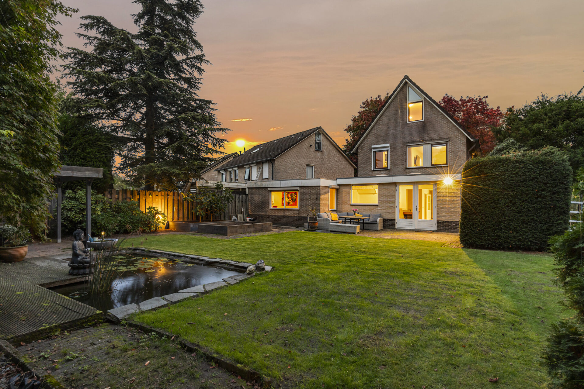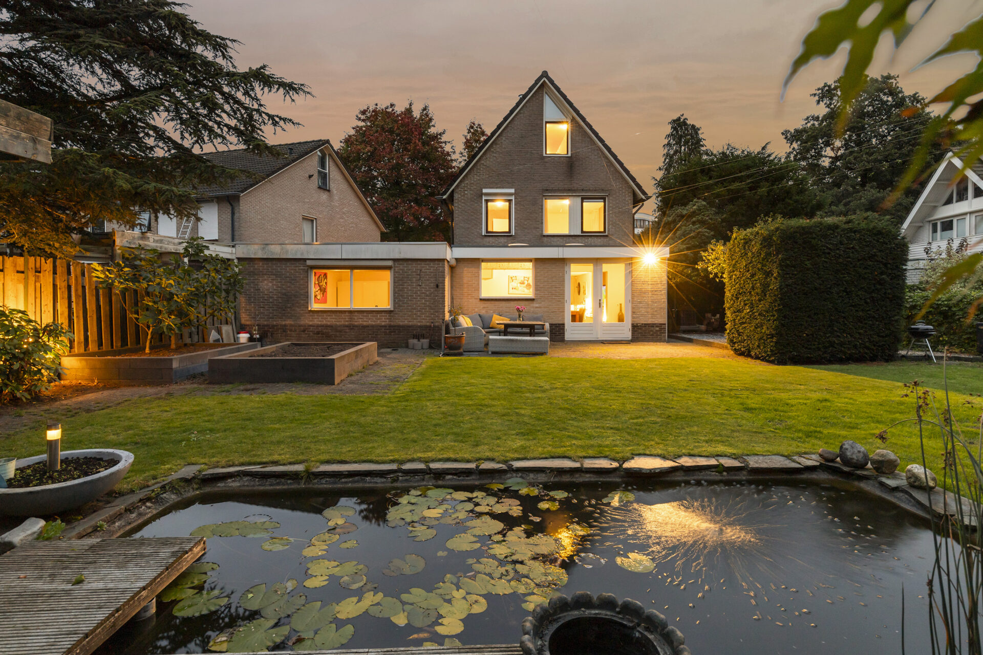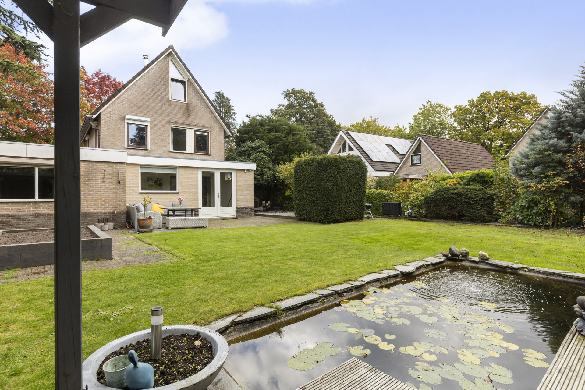 De villa staat op een riant en uniek perceel van 617 m², met een prachtig aangelegde tuin die volop privacy biedt. De tuin is een waar buitenverblijf, voorzien van een zonnig terras, een sfeervolle vijverpartij, een veranda en een vrijstaande houten berging – een heerlijke plek om te ontspannen en te genieten van het buitenleven.
