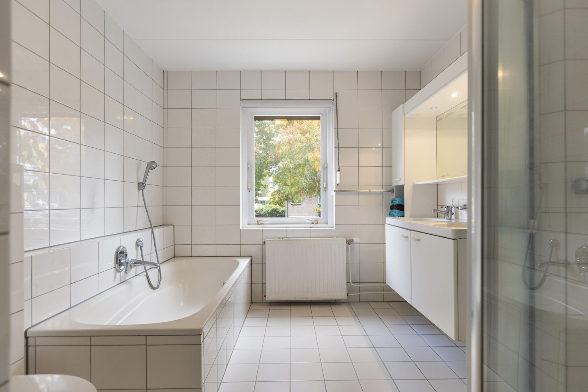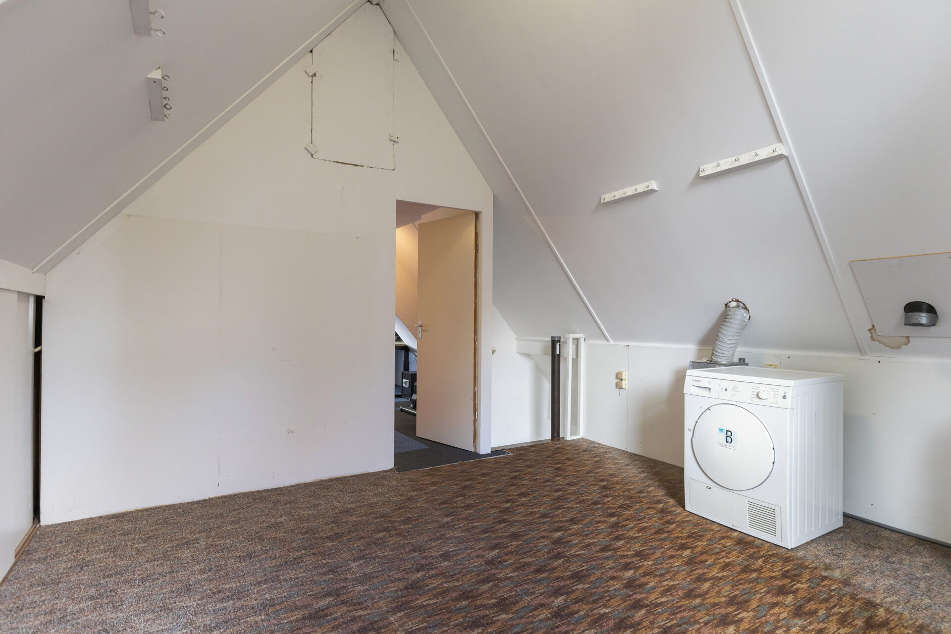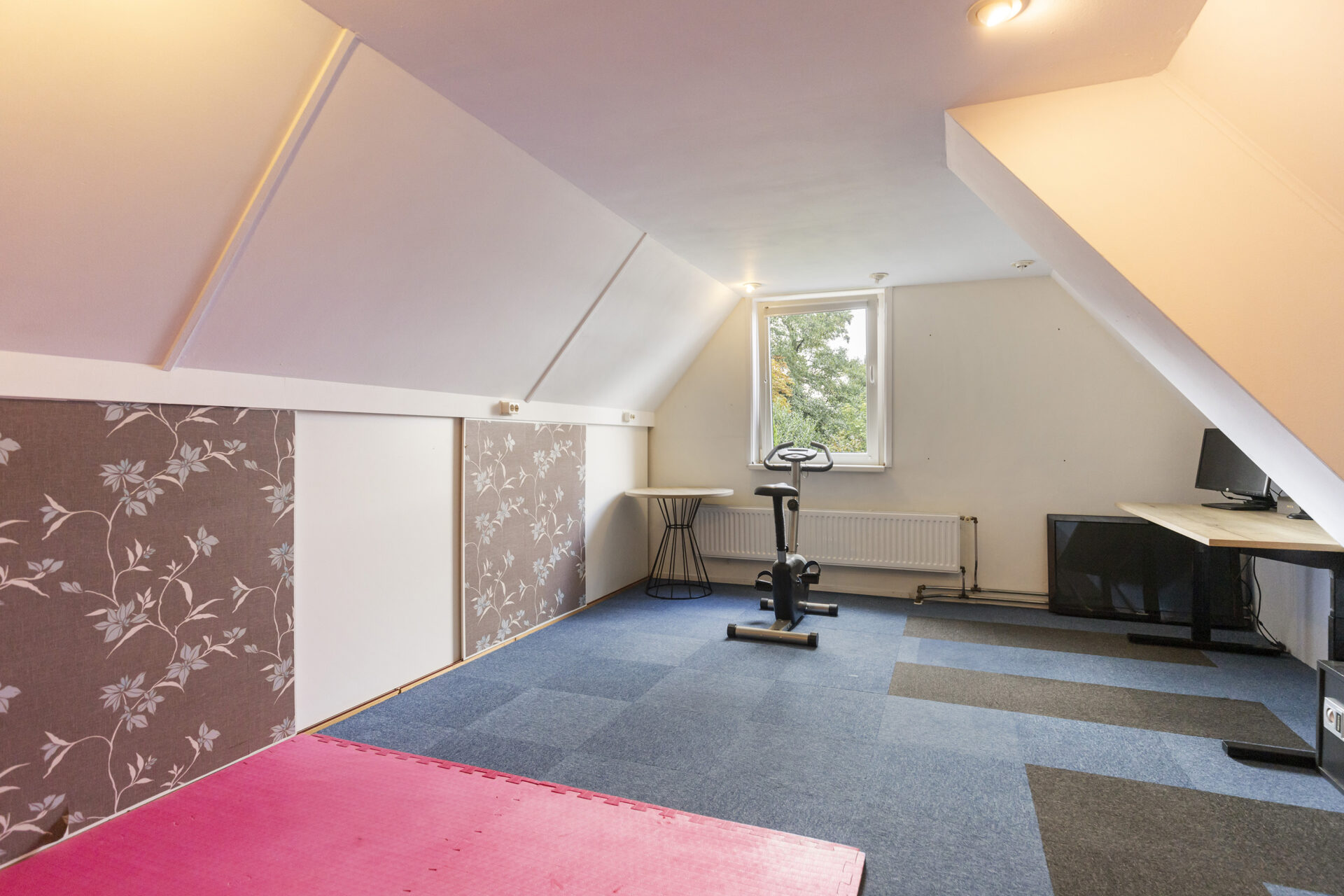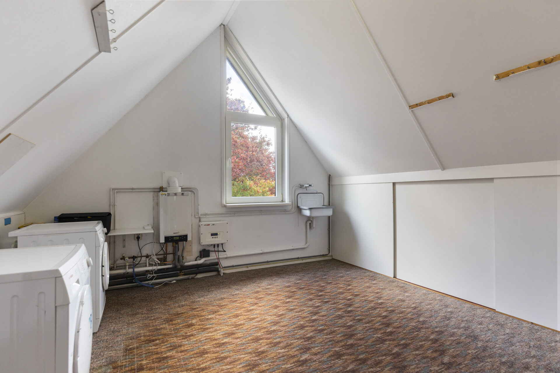 Op de eerste verdieping bevinden zich drie ruime slaapkamers en een verzorgde badkamer met ligbad, douchecabine, toilet en dubbel wastafelmeubel. De tweede verdieping biedt een ruime overloop met wasmachineaansluiting, cv-opstelling en een vierde slaapkamer. De zolder biedt daarnaast extra bergruimte of mogelijkheden voor een hobbyruimte of speelzolder.