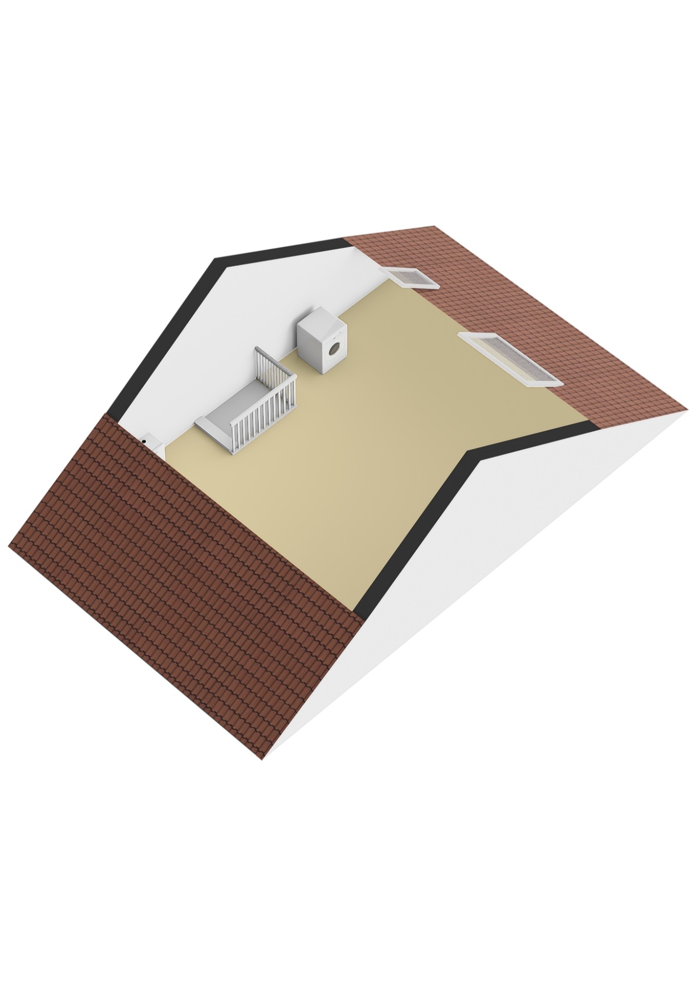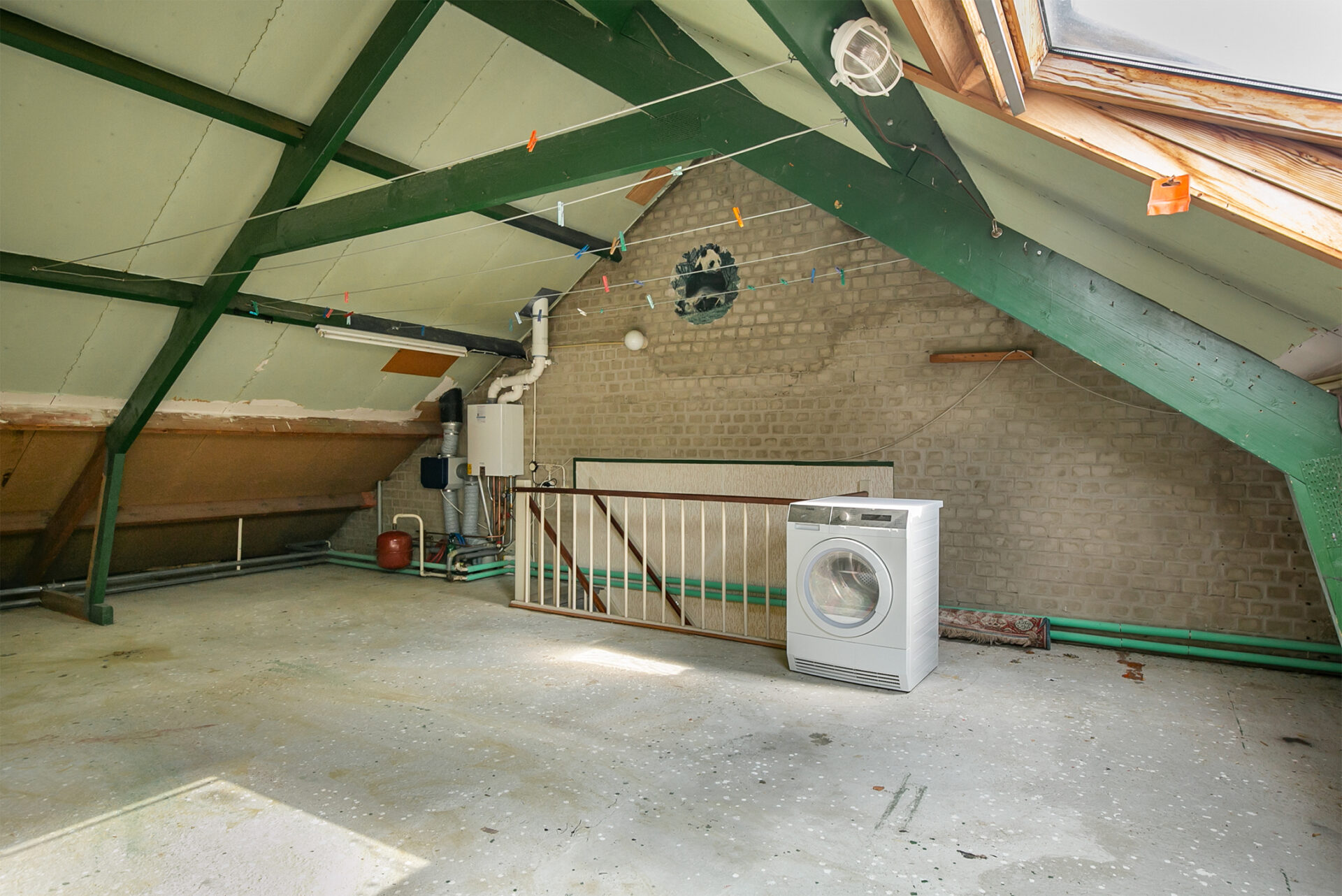 Ruime zolderverdieping met dakraam, cv-installatie en aansluiting voor wasapparatuur. Hier is eenvoudig een vierde slaapkamer te realiseren.
