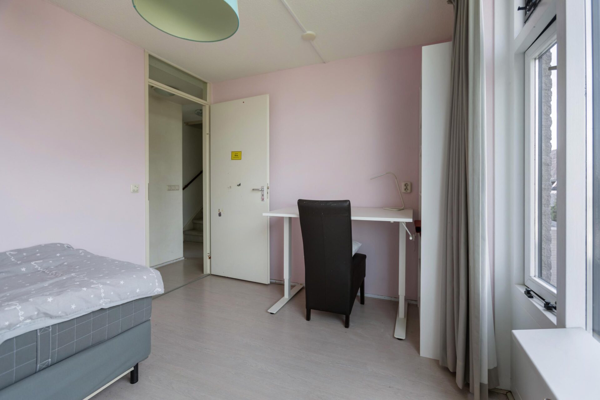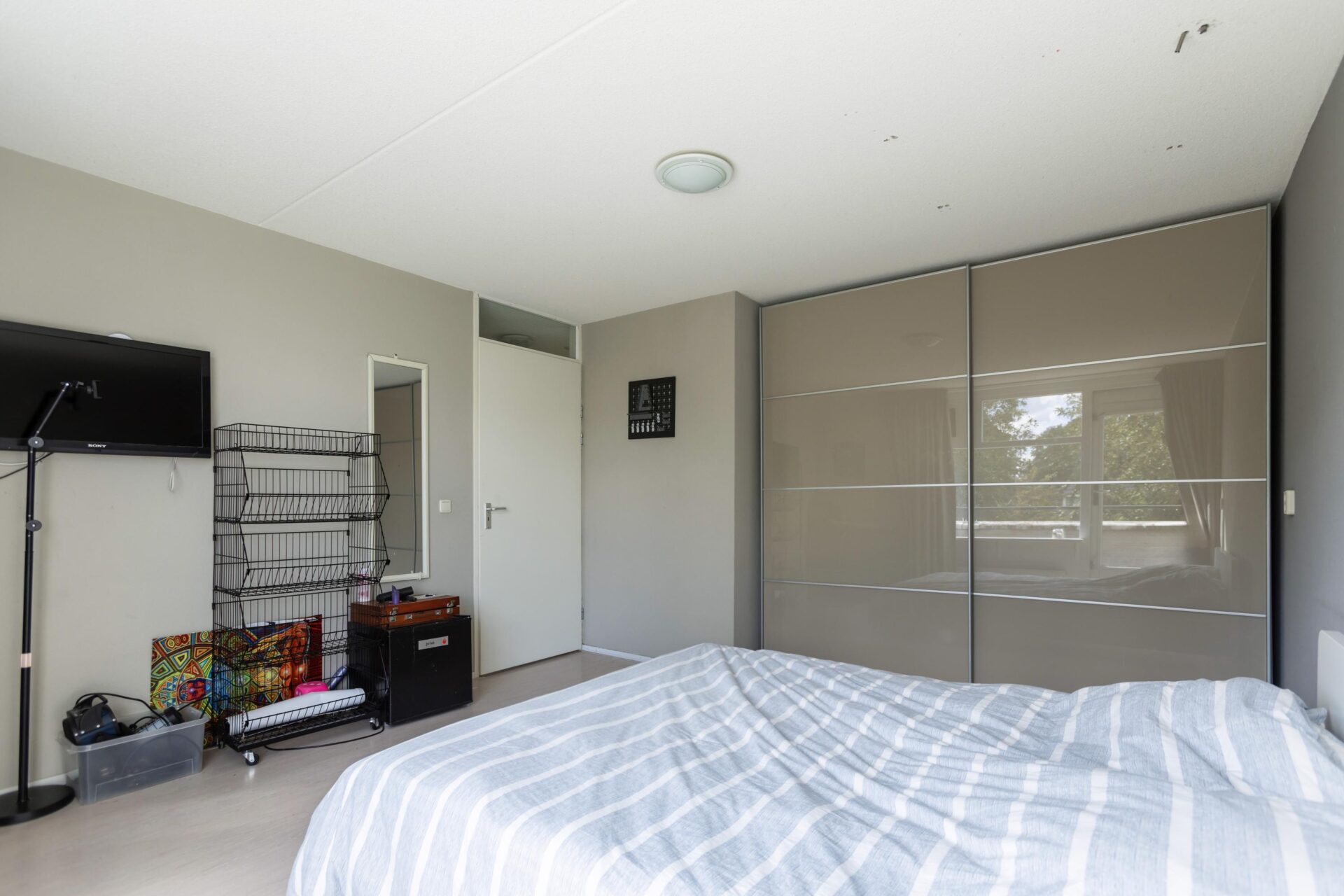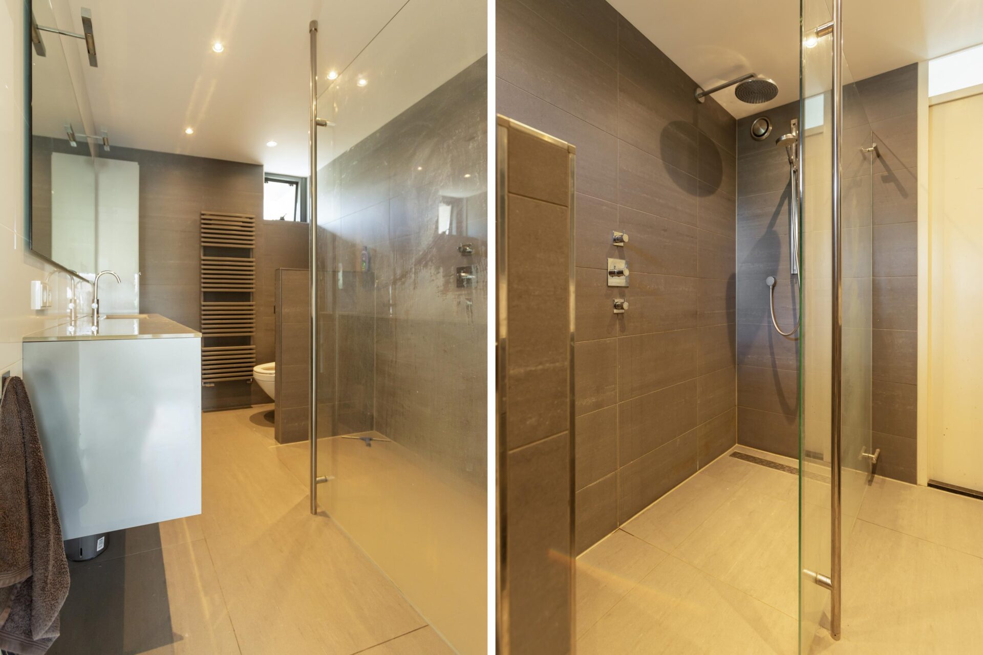 Overloop, drie slaapkamers, waarvan een met een balkon, badkamer voorzien van inloopdouche, toilet en ruime wastafel. Vaste trap naar de tweede verdieping.