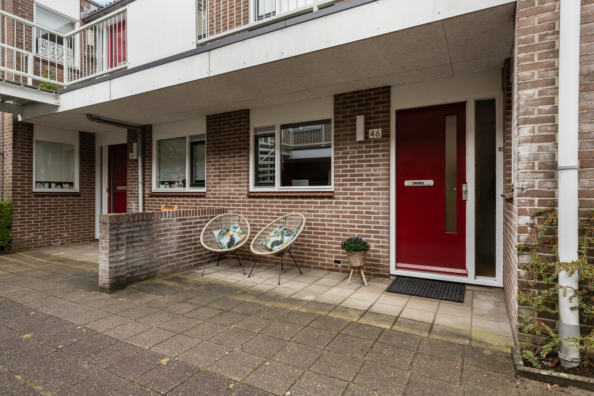 Entree/hal met toegang tot de diverse vertrekken. Meterkast (volledig vernieuwd) en separaat modern toilet. De royale woonkamer ligt aan de rechterzijde van het appartement en is ruim van formaat om een gezellige zithoek en eethoek te creëren. De eethoek geeft een fijne verbinding naar de moderne open keuken. Deze is in hoekopstelling geplaatst en voorzien van diverse inbouwapparatuur. Naast de keuken is een handige provisiekast aanwezig alsmede een berging met de C.V.-ketel opstelling en wasmachine aansluiting. Vanuit de woonkamer is het grotendeels overdekte terras bereikbaar (overigens is er ook een gedeelte overdekt terras aan de entree-kant van de woning). Vanuit de hal zijn de twee slaapkamers bereikbaar. Aan beide kanten van het appartement is een slaapkamer aanwezig waarbij de hoofdslaapkamer aan de voorzijde ligt. De badkamer is inpandig gelegen. Het betreft een moderne badkamer met inloopdouche en wastafelmeubel.
