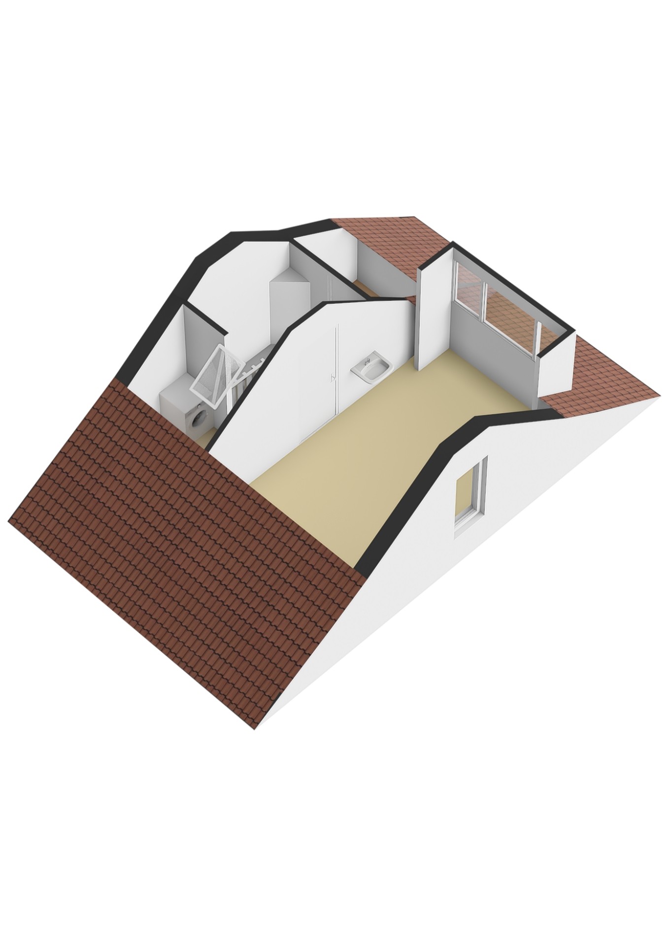 Via een vaste trap bereikbaar. Overloop met bergruimte, aansluiting voor was apparatuur en opstelling van de cv-ketel. Verder bevindt zich hier de vierde slaapkamer, voorzien van een dakkapel (2009, uitgevoerd in HR++ hardhout).