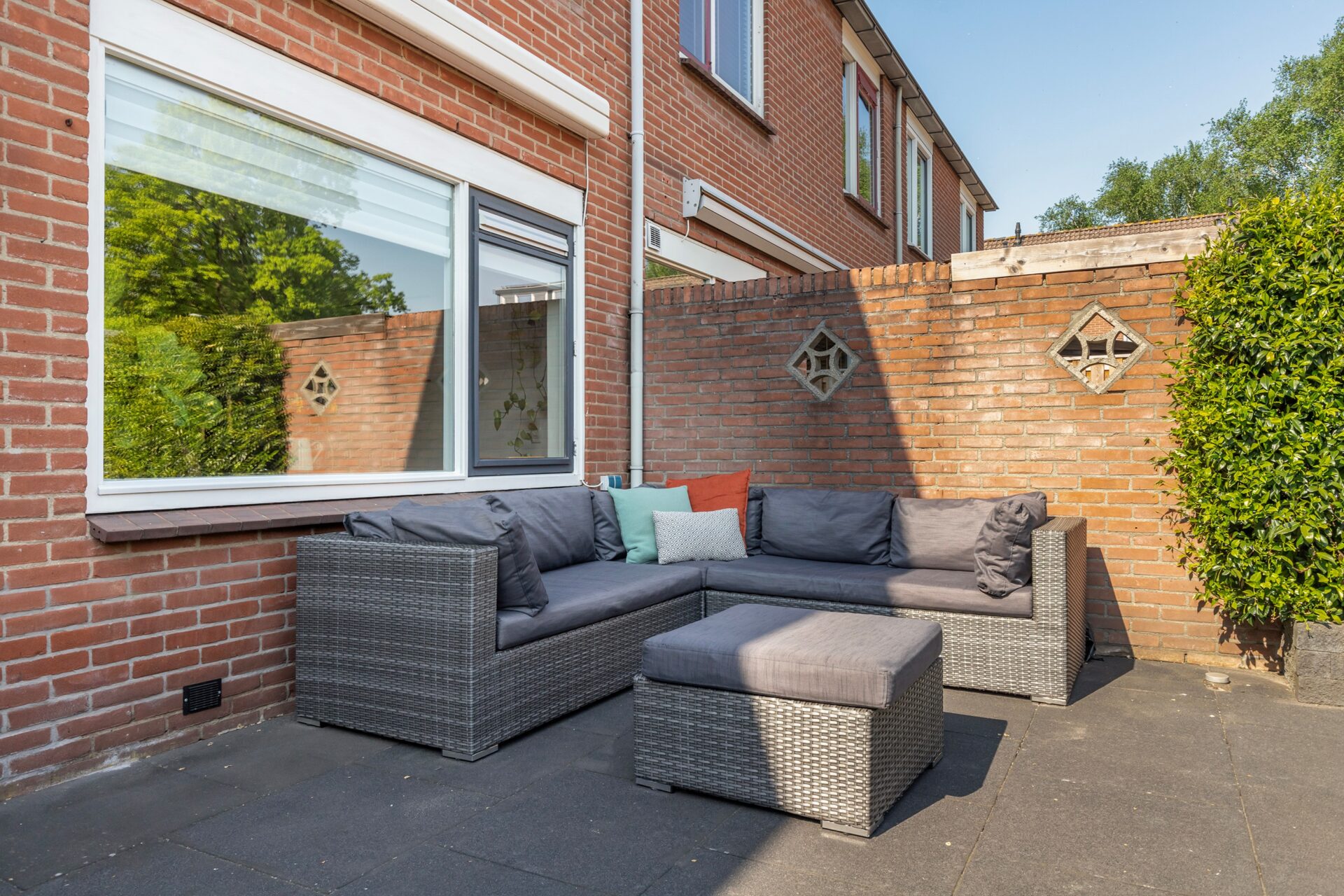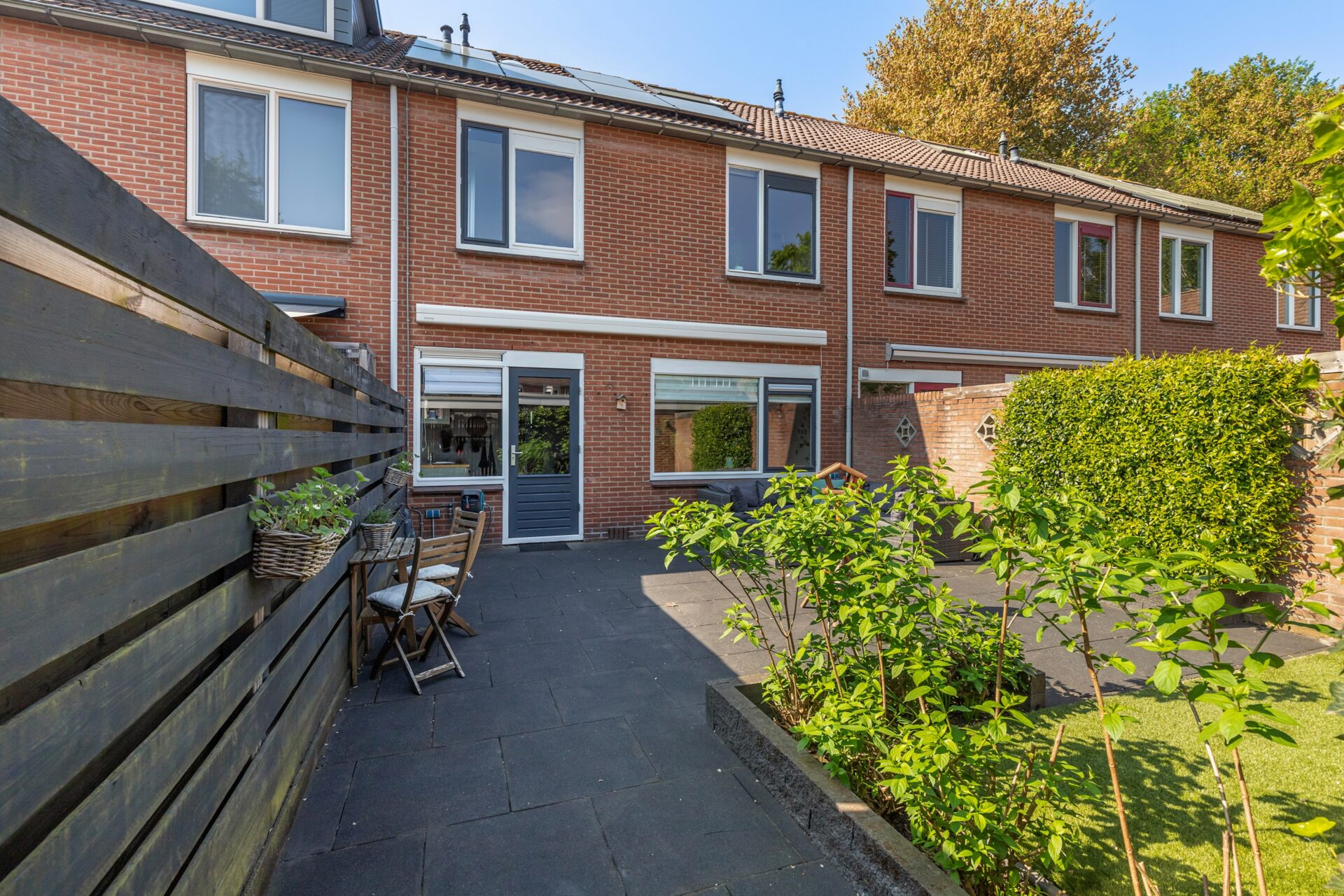 - Zonnige tuin op zuidoosten met elektrisch zonnescherm;