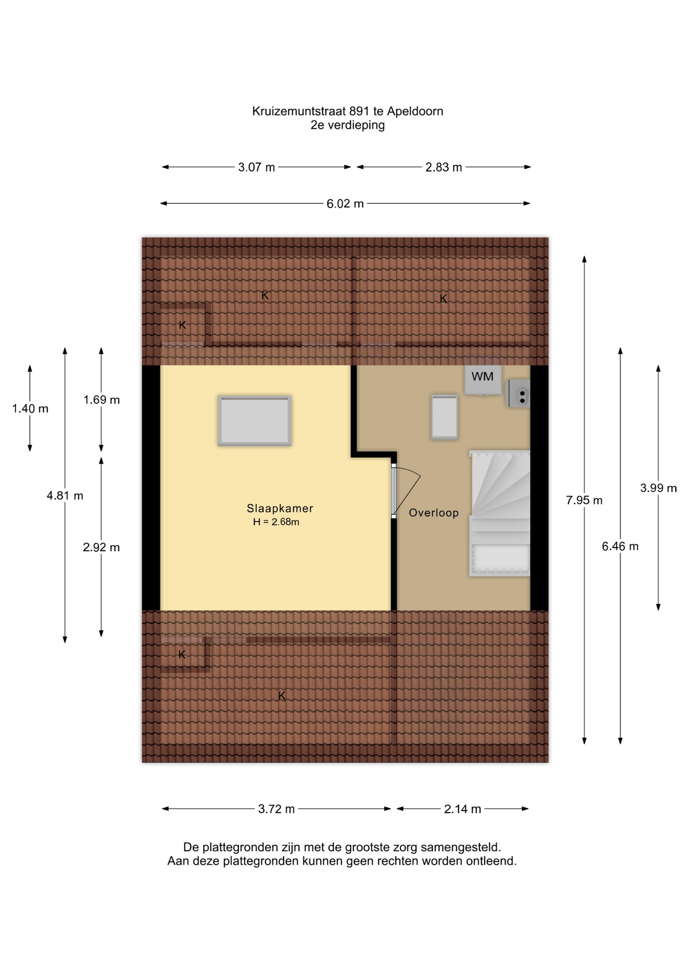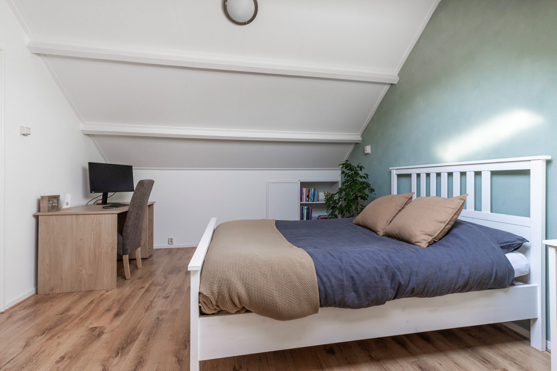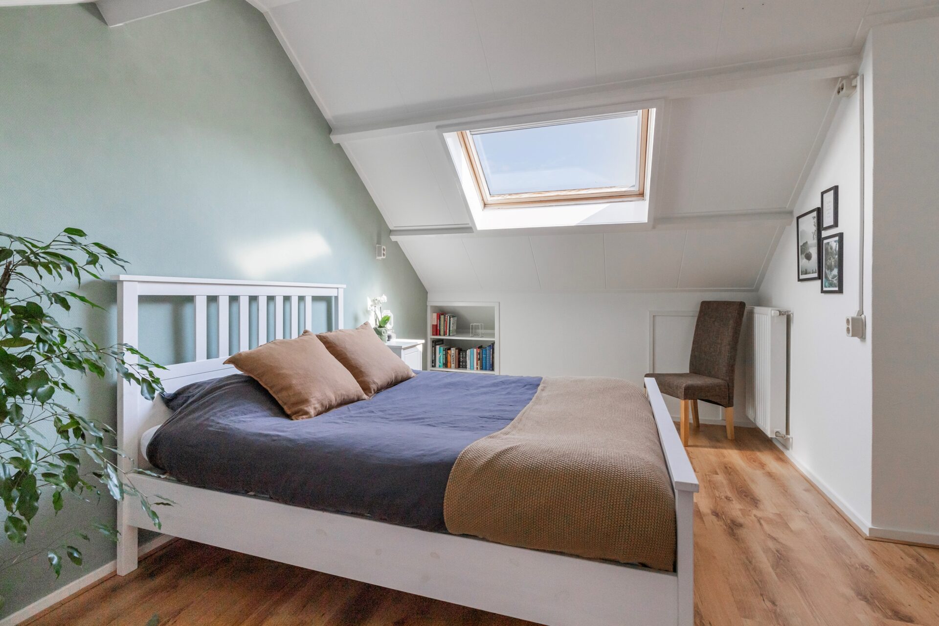 Tweede verdieping: zeer ruime overloop met o.a. de C.V.-ketel en wasmachine opstelling. Op de overloop zit een dakraam waardoor er natuurlijk lichtinval is. Opslagruimte achter schotten. Vierde zeer ruime slaapkamer, voorzien van groot dakraam en aan weerszijden wederom opslagruimte achter schotten.