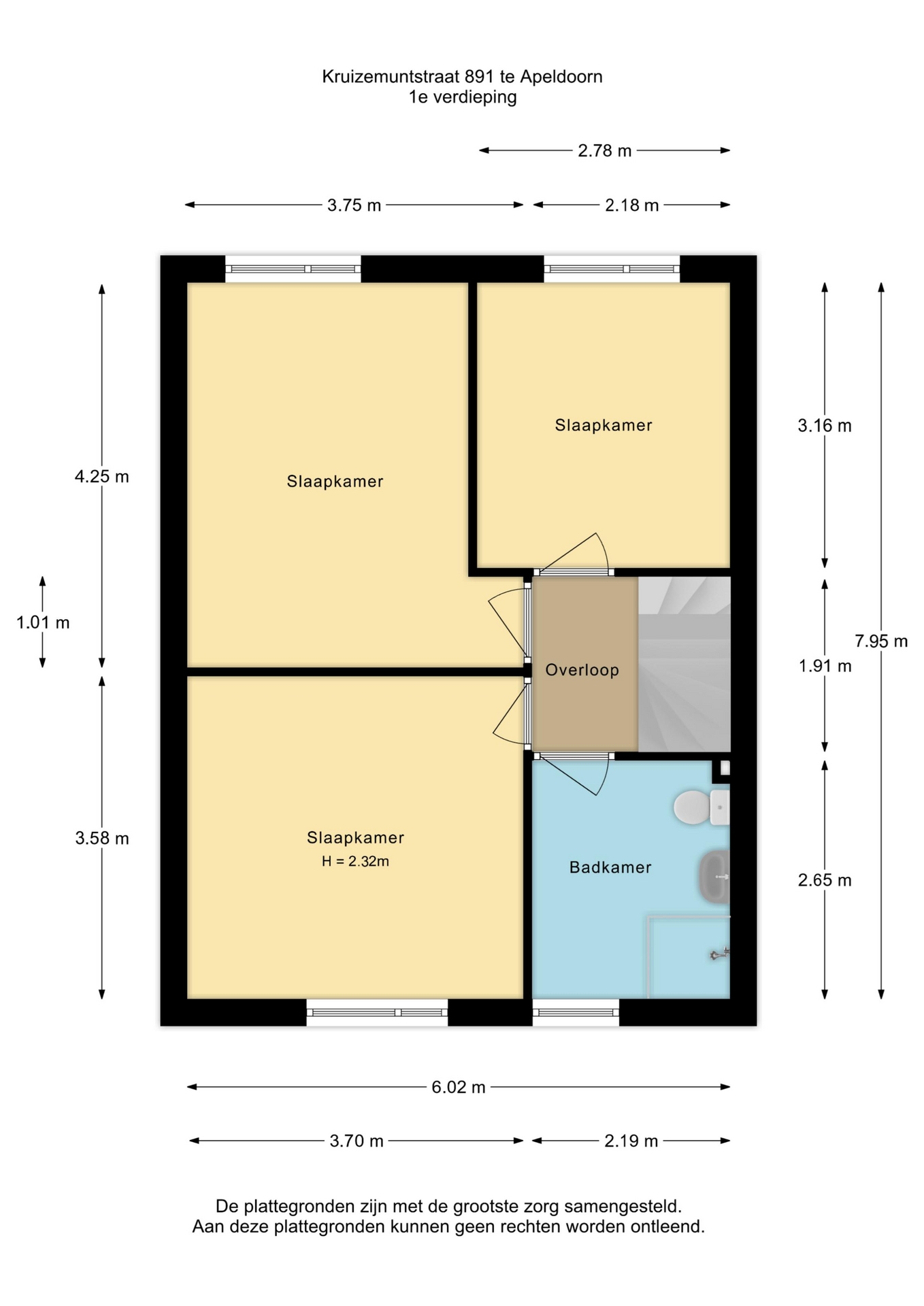 Eerste verdieping: overloop met toegang tot 3 ruime slaapkamers. 2 aan de achterzijde en 1 aan de voorzijde. Het valt direct op hoe lekker ruim en licht deze kamers zijn. De badkamer ligt aan de voorzijde en is voorzien van inloopdouche, toilet en wastafel.