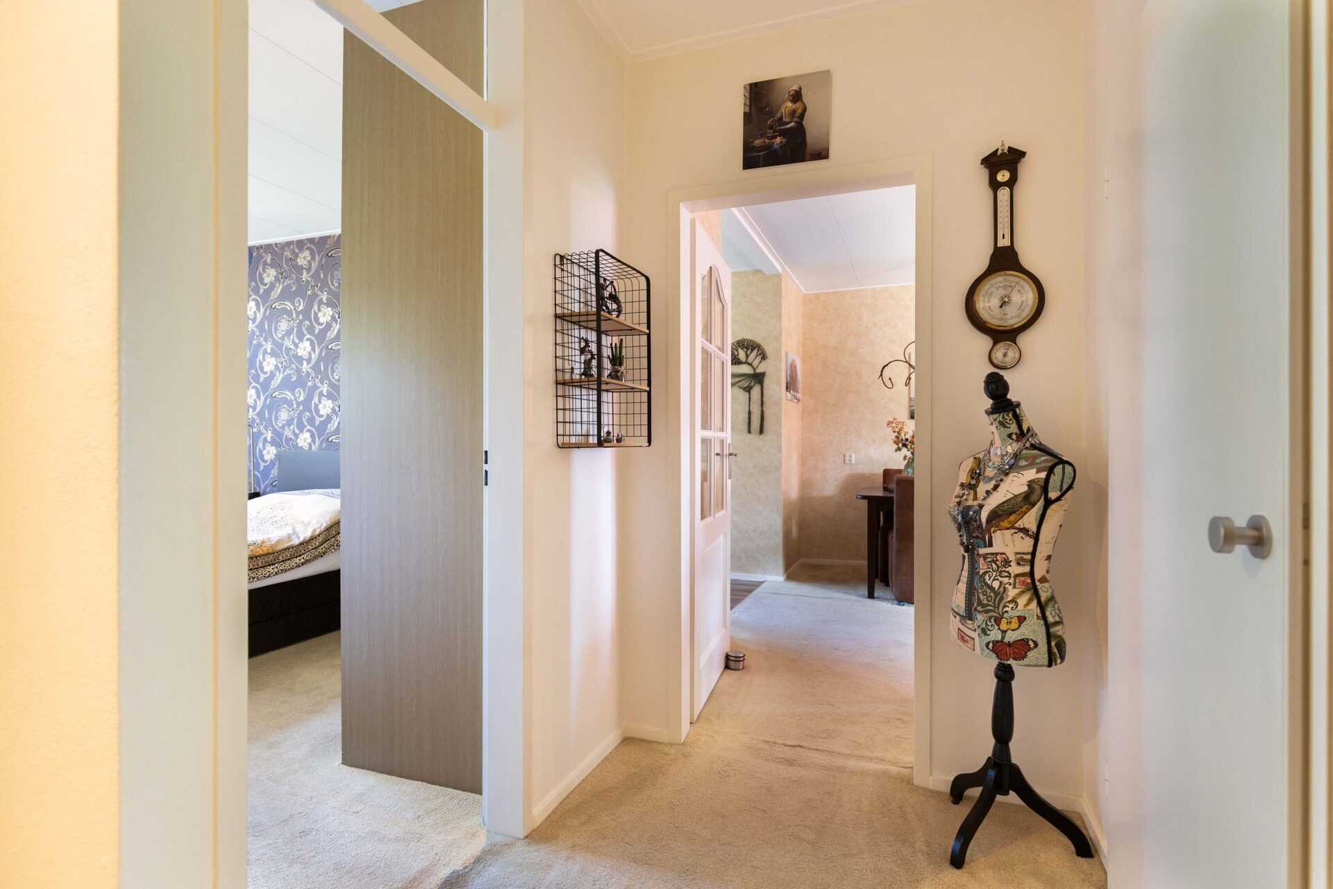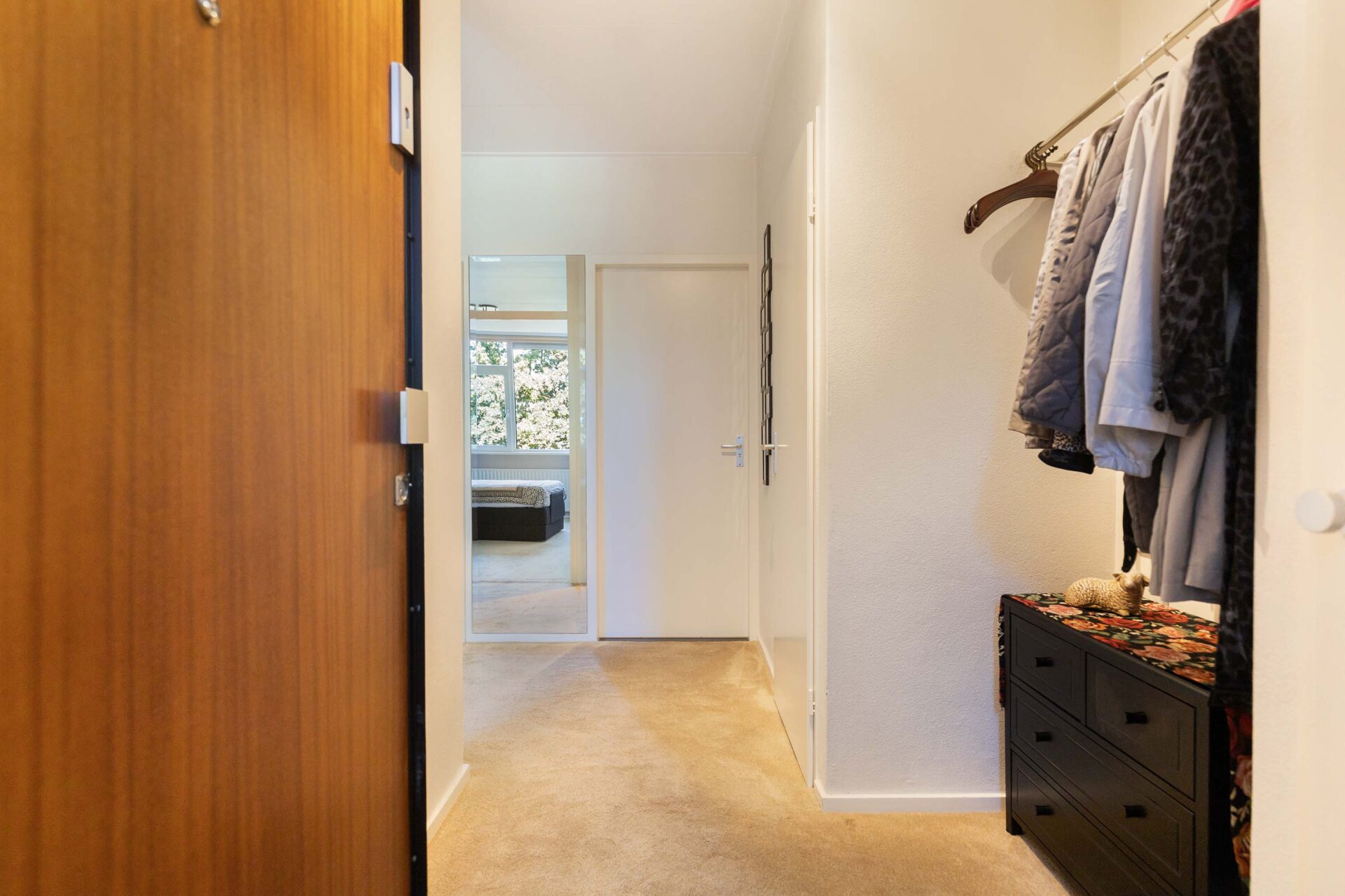 Bij binnenkomst kom je in de ruime en lichte L-vormige hal met garderobe.