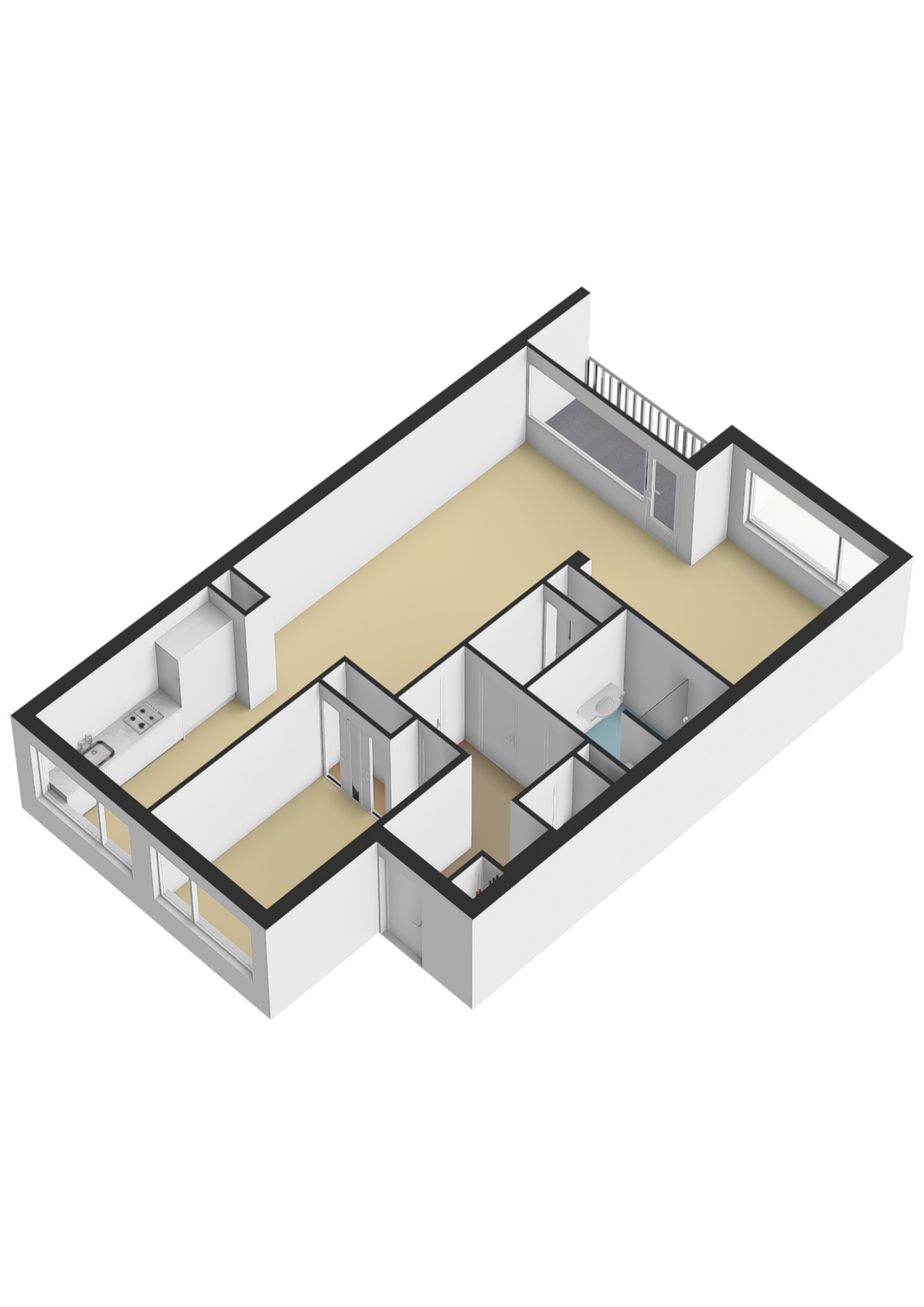 - Voorheen 3 kamers, nu royaal 2-kamerappartement
