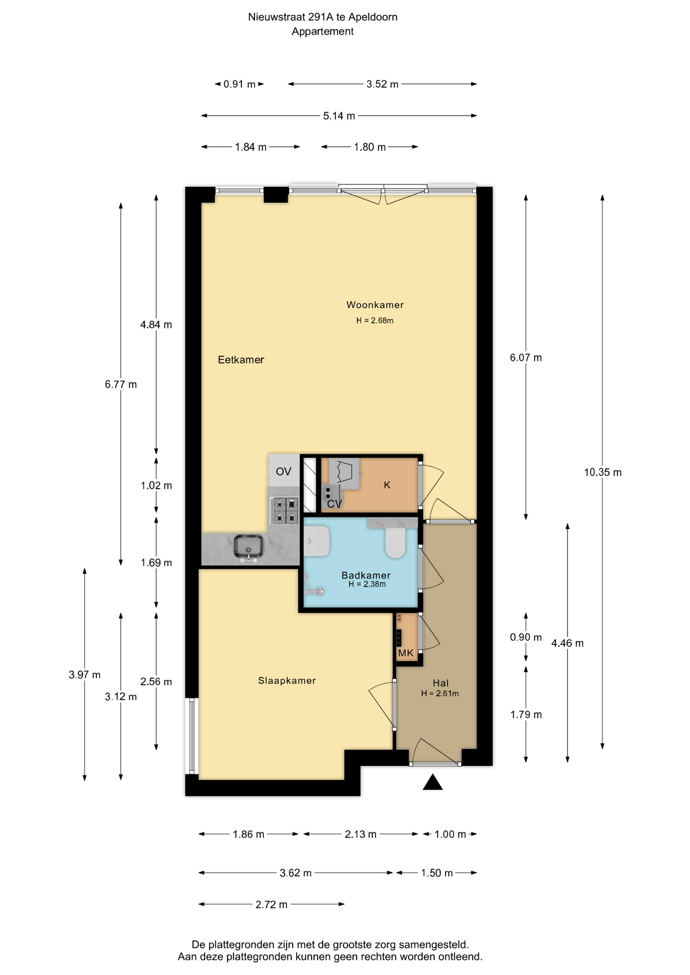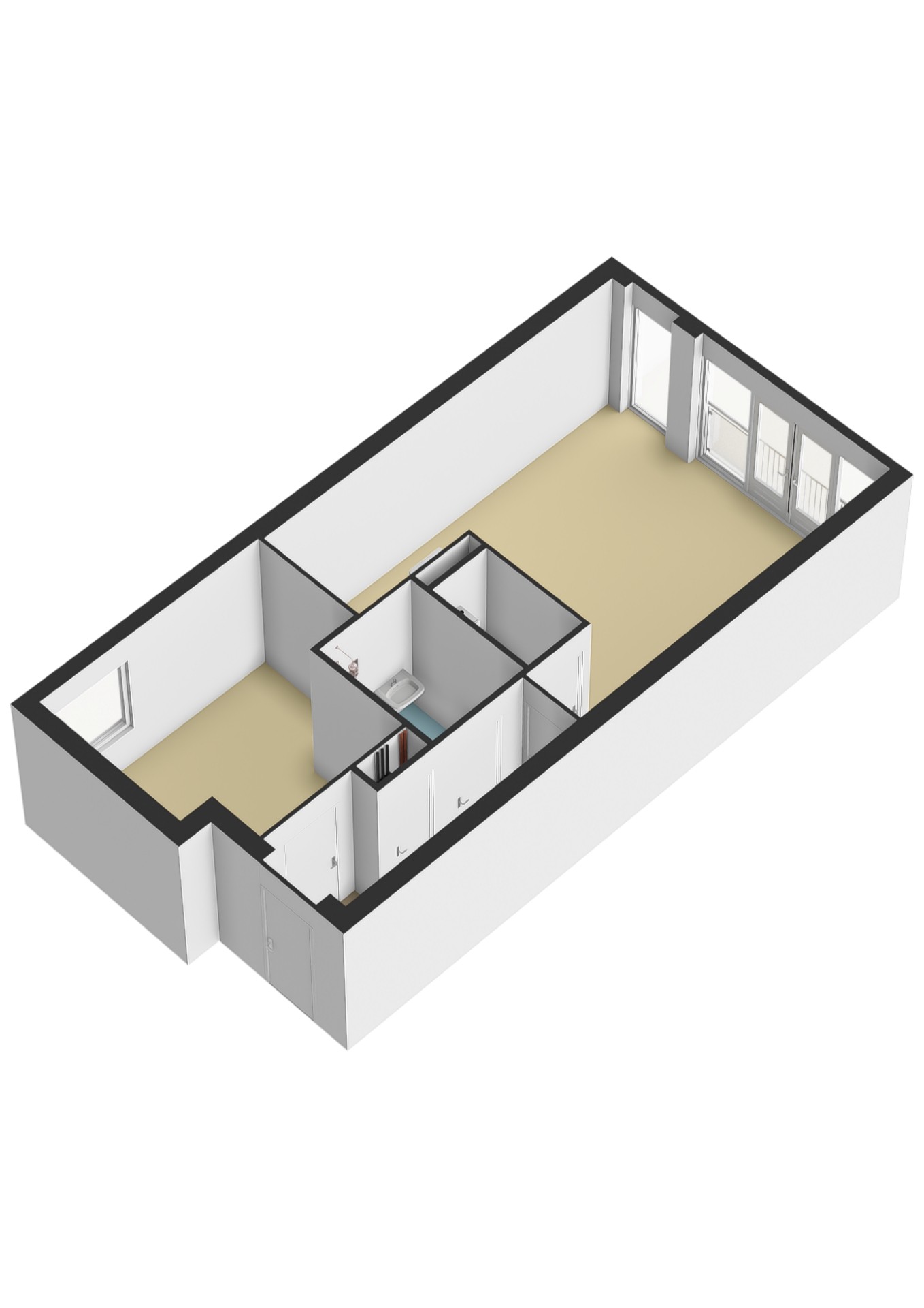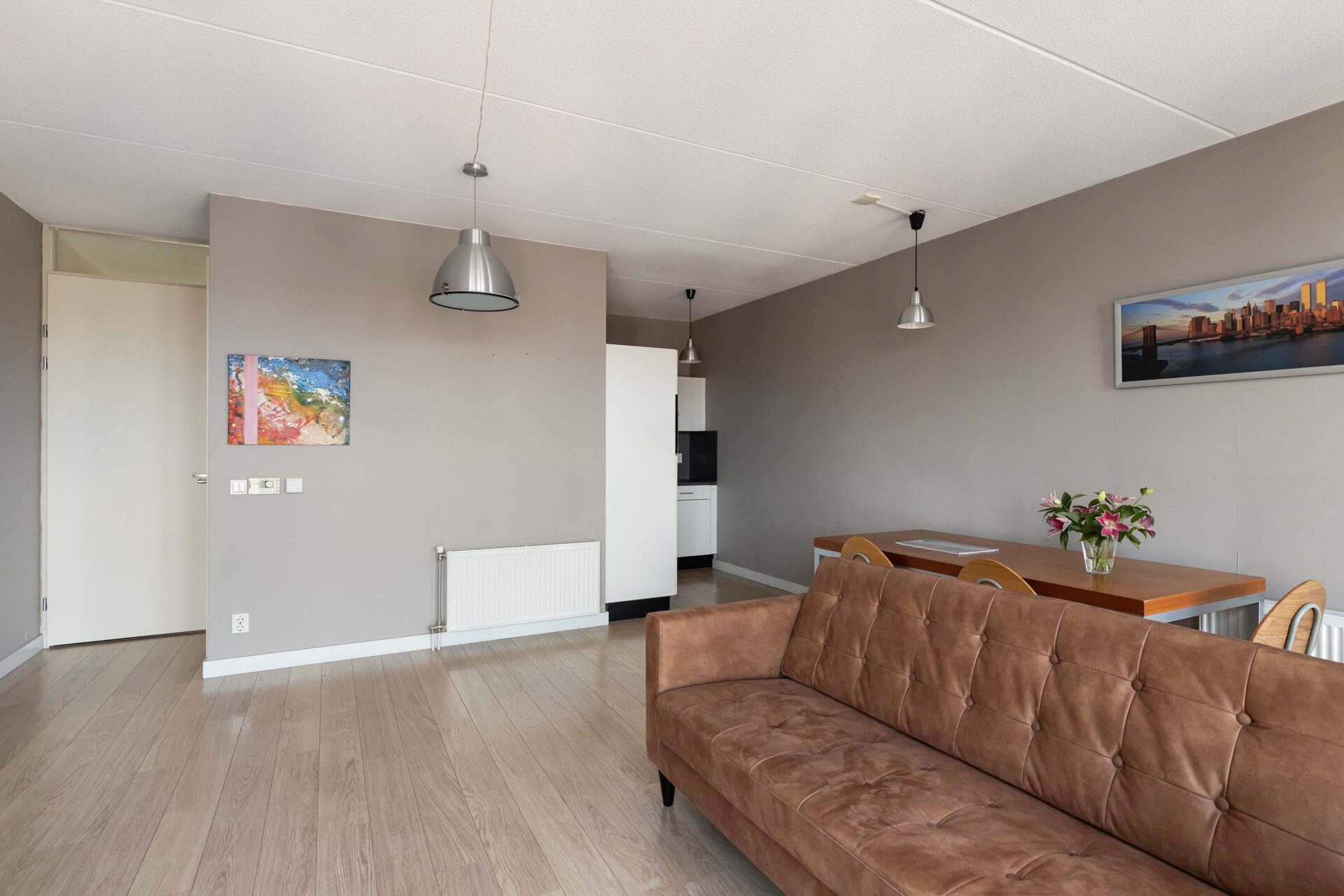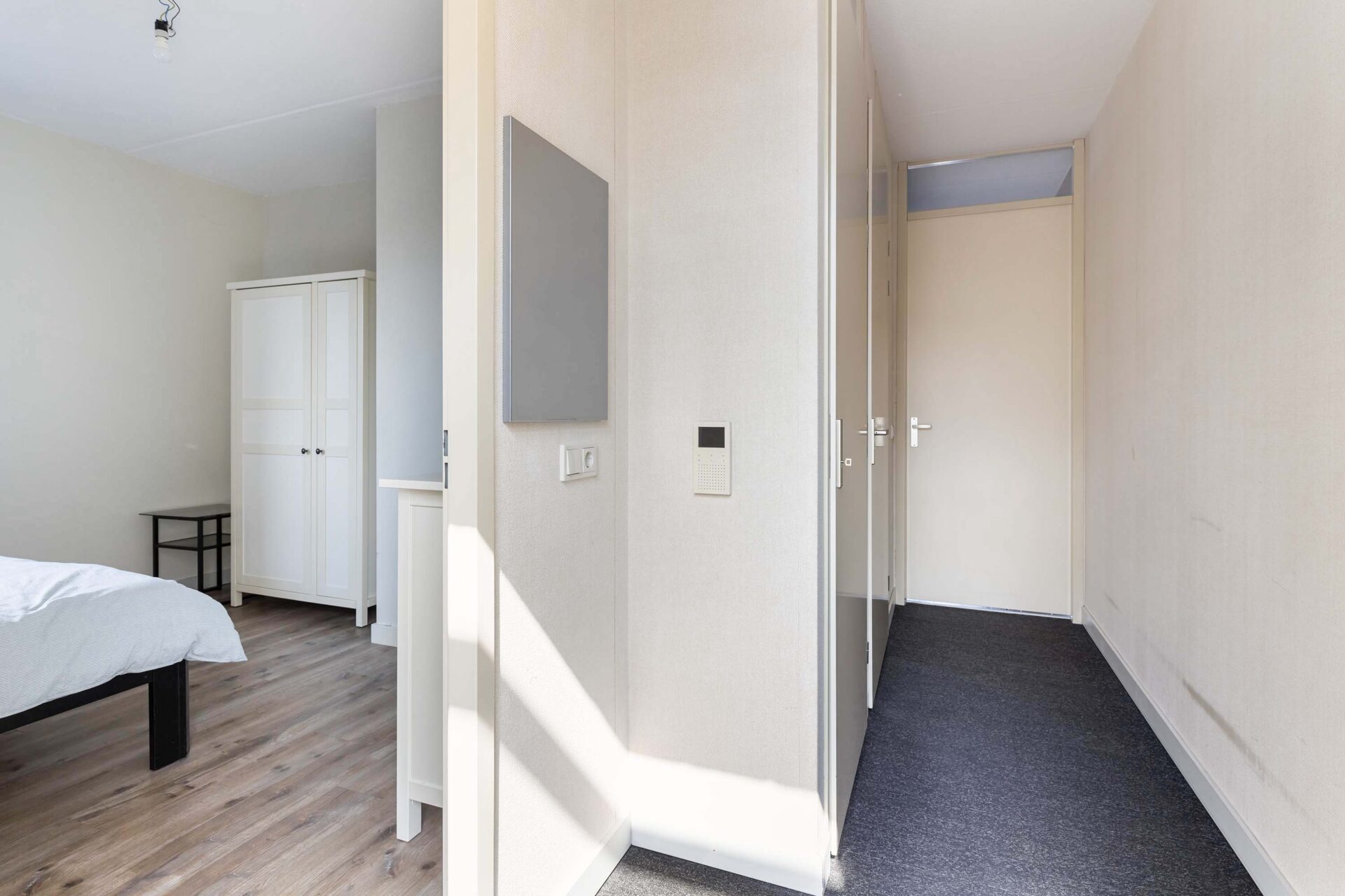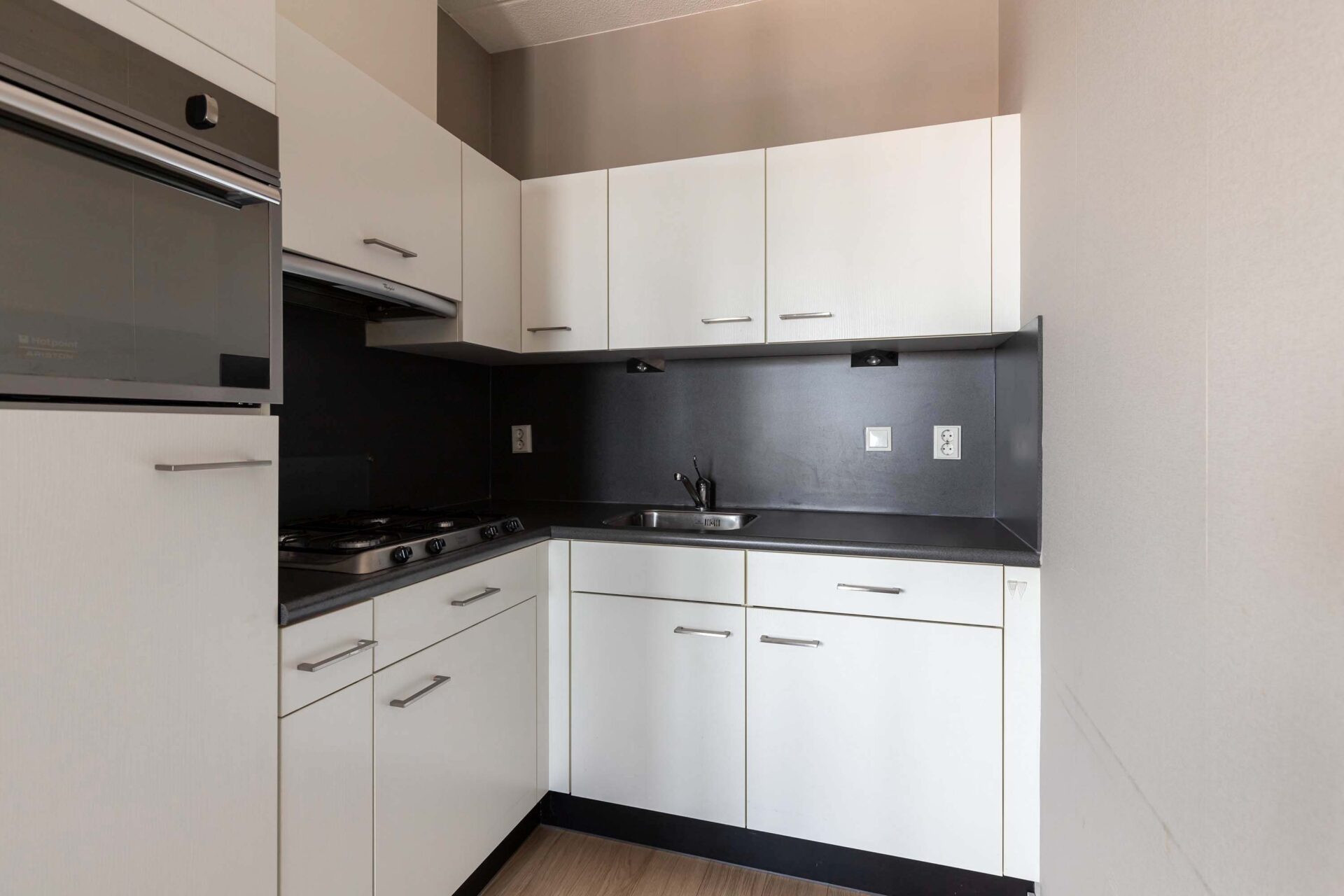 Entree / ruime hal, toegang tot de woonkamer. De grote raampartijen geven een prettig lichtinval en er is een frans balkon aan de voorzijde. De woonkamer is ruim en praktisch van formaat. Half open keuken geplaatst in hoekopstelling (voorzien van koelkast, oven, gaskookplaat en afzuigkap). De licht betegelde badkamer is voorzien van inloopdouche, wastafel en vrij hangend toilet. Ruime slaapkamer aan de galerij/atrium zijde van het appartement. Doordat het appartement op de hoek is gelegen, beschikt deze slaapkamer over een raam aan de zijgevel en niet aan het atrium. Hierdoor blijft deze slaapkamer aanzienlijk koeler in de zomer.