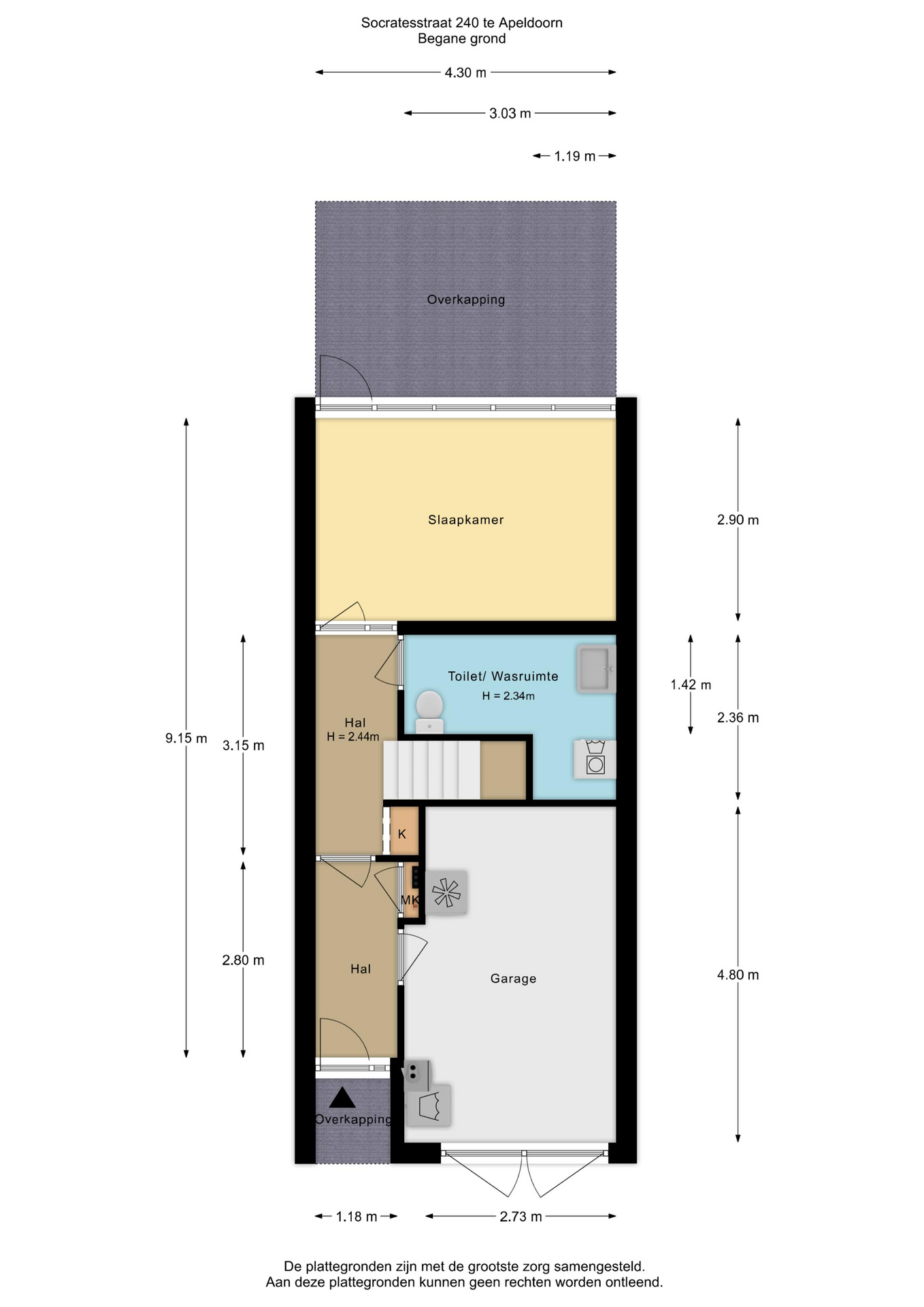 Ruime entree/hal met meterkast en vaste kast, toiletruimte met wasmachineaansluiting, een praktische slaapkamer of werkkamer en toegang tot de inpandige garage.