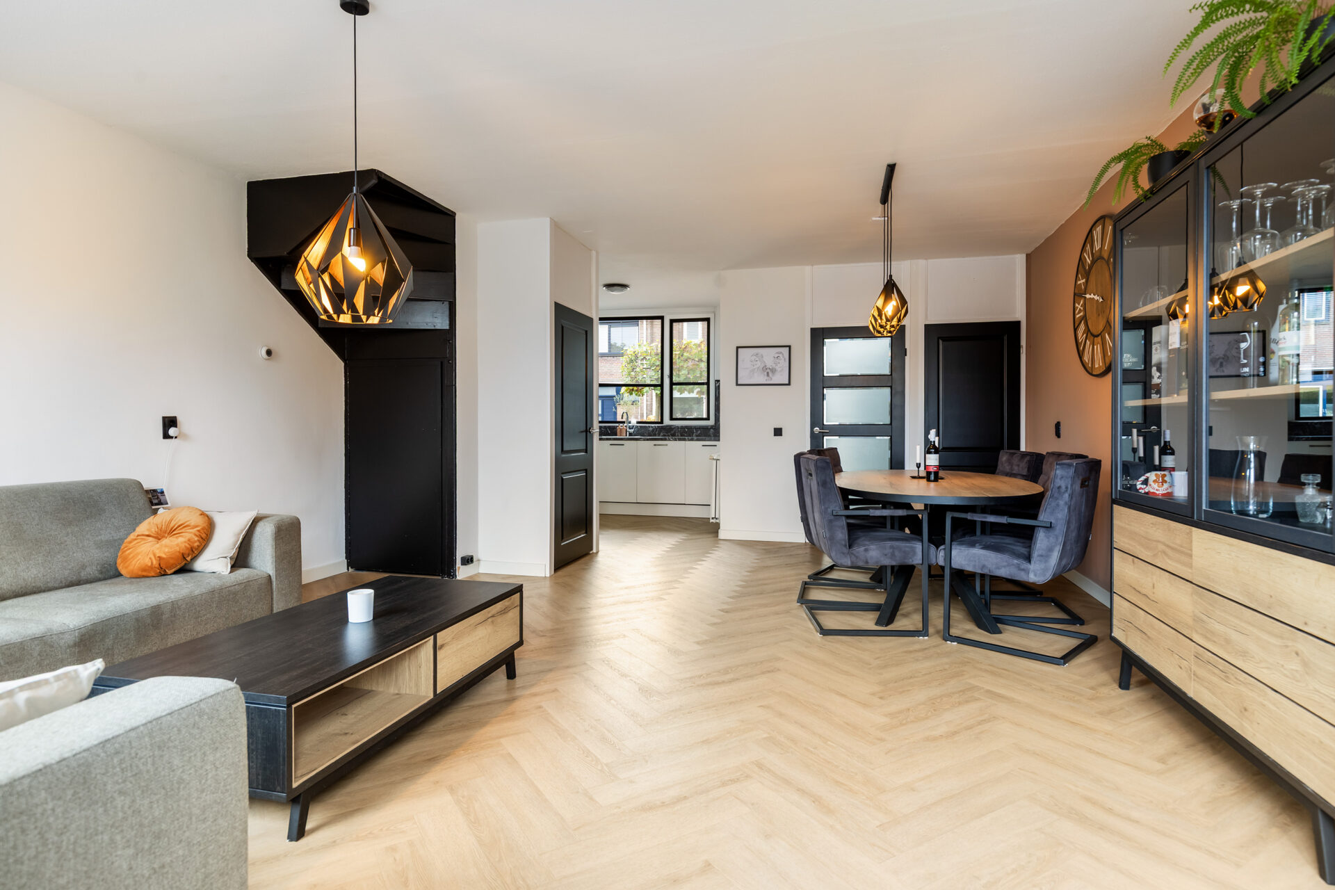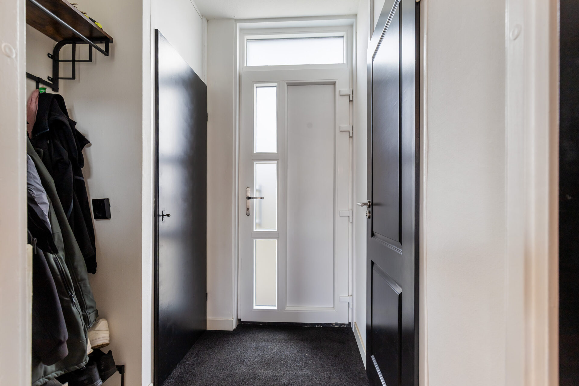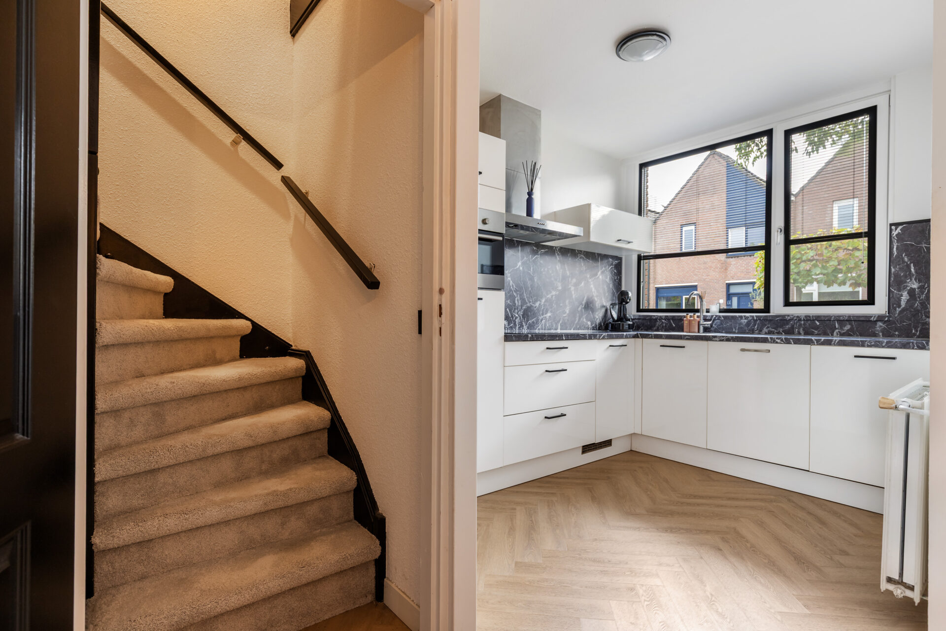 Begane grond: entree/hal met garderobe ruimte en toegang tot het moderne toilet (2024) en meterkast (2023). De woonkamer is tuingericht gelegen en heeft veel ruimte en licht te bieden. De begane grond is voorzien van een PVC-visgraatvloer en strak gestucte wanden. Keuken aan de voorzijde van de woning, geplaatst in hoekopstelling. Het betreft een moderne keuken met diverse inbouwapparatuur. De trap naar de eerst verdieping bevindt zich tussen de woonkamer en keuken in, maar is af te sluiten met een deur. Vanuit de woonkamer is er een trapkast bereikbaar.