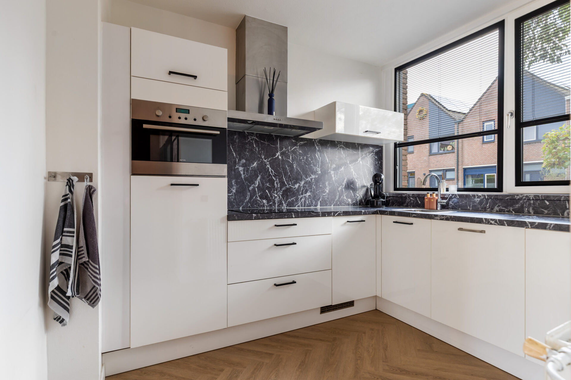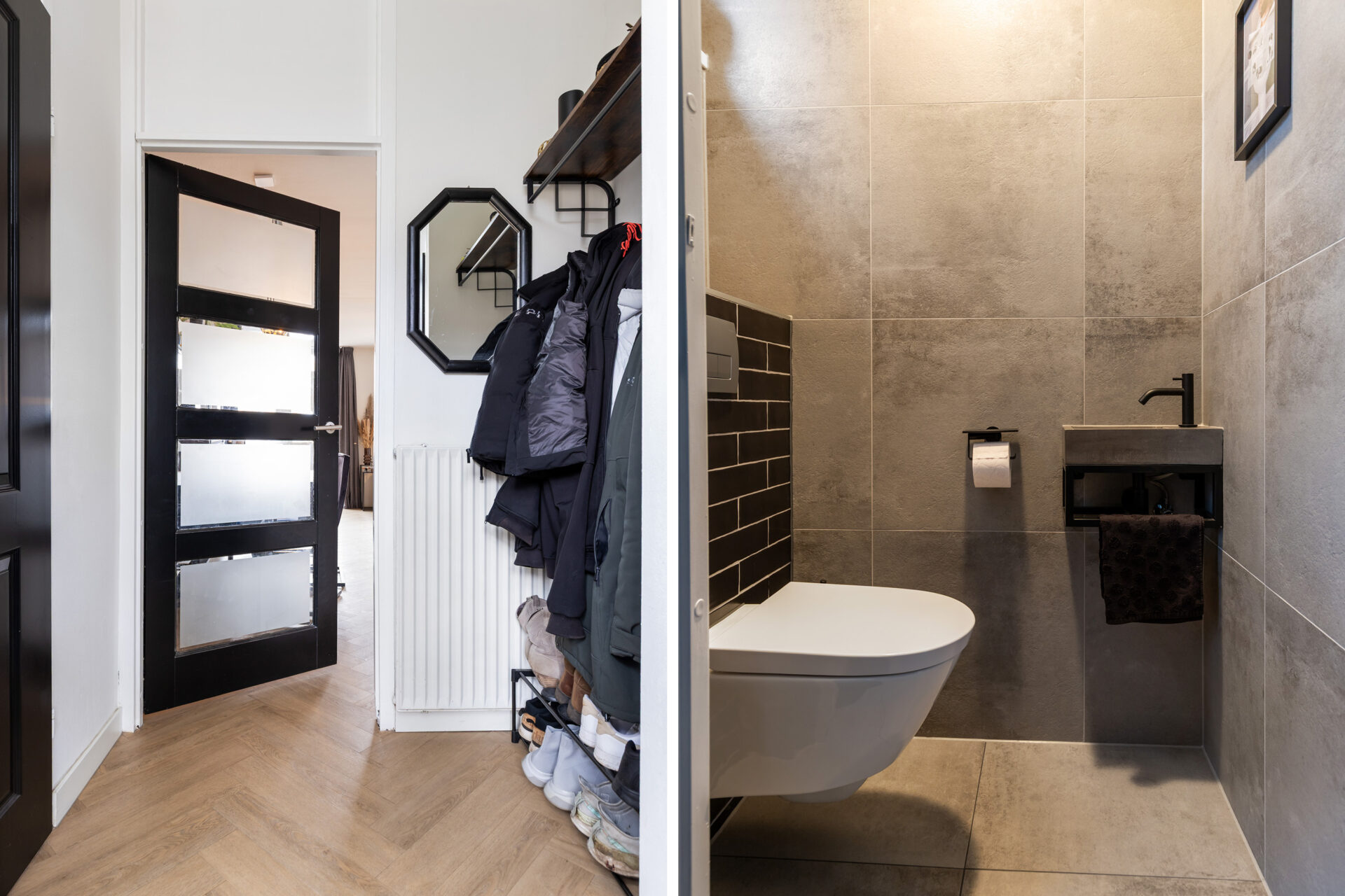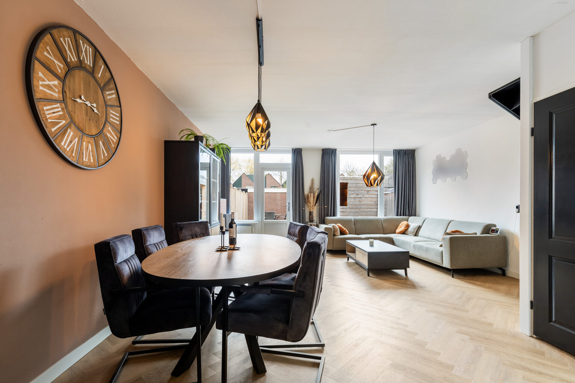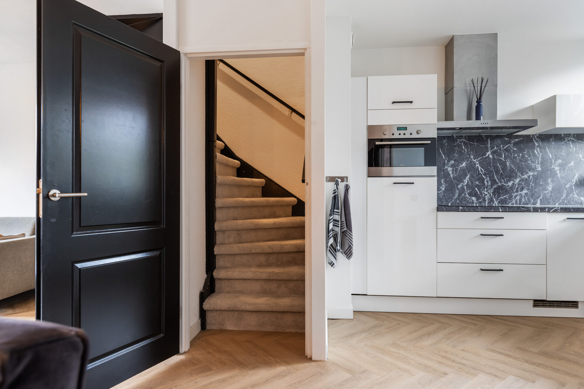 Begane grond: entree/hal met garderobe ruimte en toegang tot het moderne toilet (2024) en meterkast (2023). De woonkamer is tuingericht gelegen en heeft veel ruimte en licht te bieden. De begane grond is voorzien van een PVC-visgraatvloer en strak gestucte wanden. Keuken aan de voorzijde van de woning, geplaatst in hoekopstelling. Het betreft een moderne keuken met diverse inbouwapparatuur. De trap naar de eerst verdieping bevindt zich tussen de woonkamer en keuken in, maar is af te sluiten met een deur. Vanuit de woonkamer is er een trapkast bereikbaar.