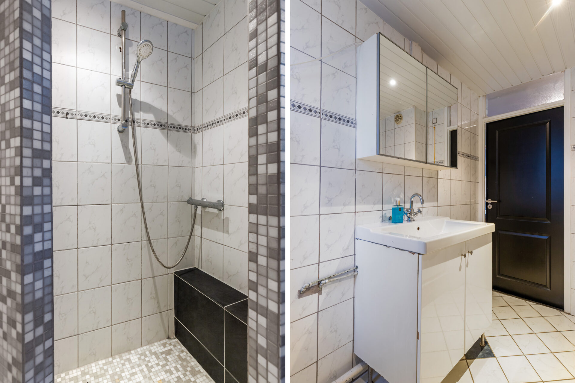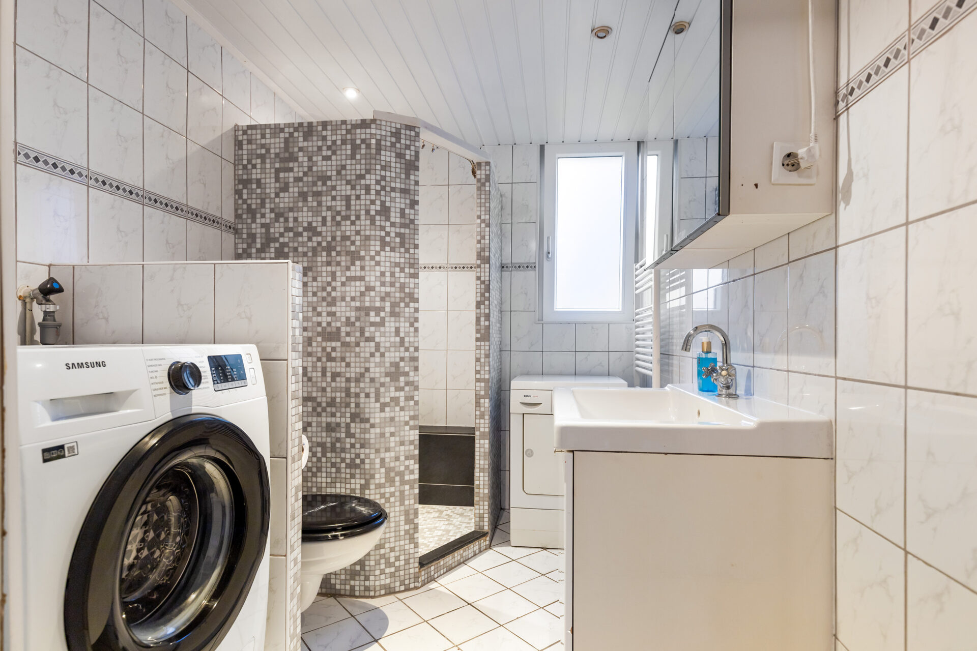 Eerste verdieping: overloop met toegang tot 3 ruime slaapkamers waarvan 2 aan de achterzijde en 1 aan de voorzijde. De badkamer is tevens aan de voorzijde gelegen en is ruim van formaat. De badkamer is voorzien van inloopdouche, wastafelmeubel, toilet en wasmachine opstelling.
