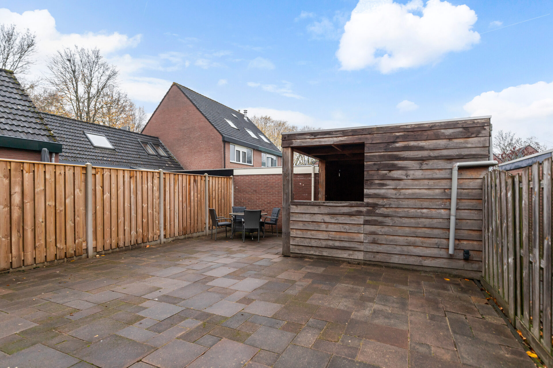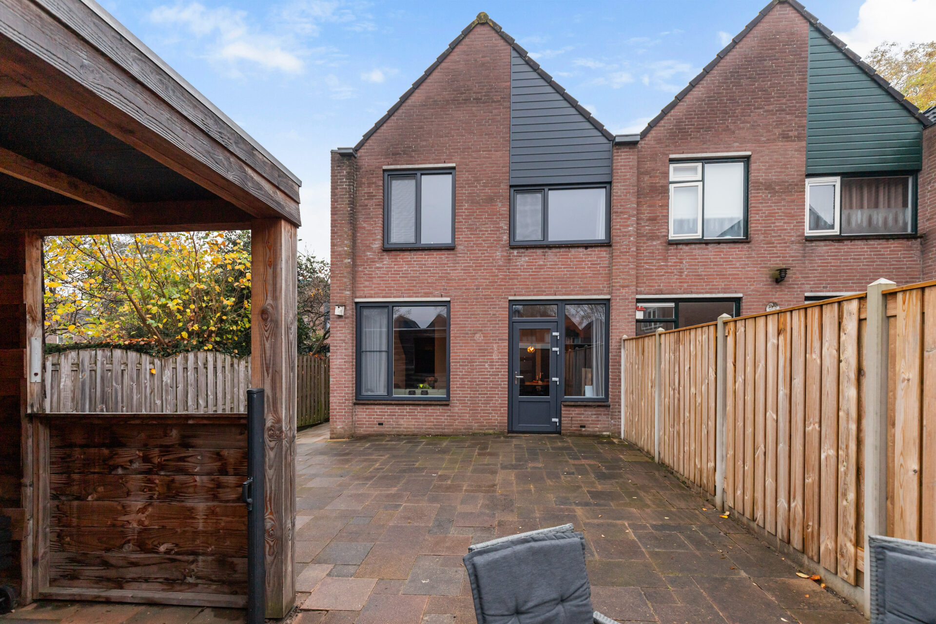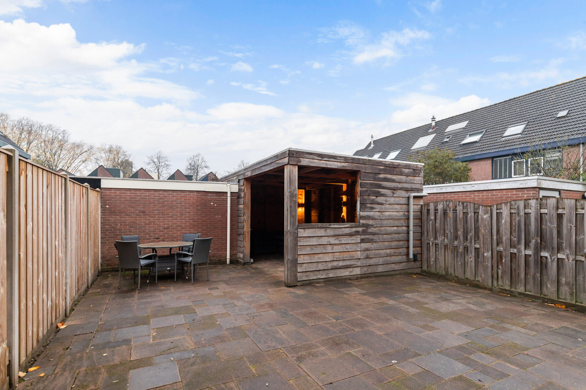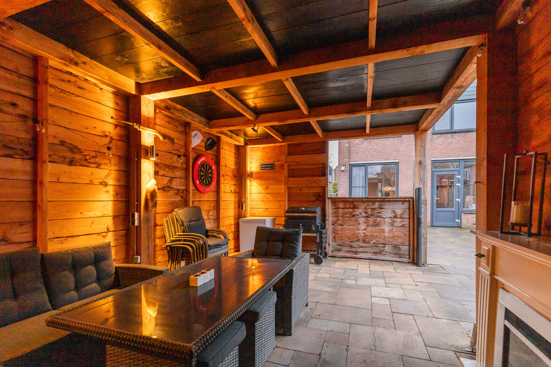 De achtertuin is gelegen op het noordwesten en door het ruime formaat is hier zon én schaduw te vinden. Aan de achterzijde is een zeer fraaie veranda/overkapping aanwezig. Ook is er een vrijstaande stenen berging en een achterom via de zijkant van de woning aanwezig.