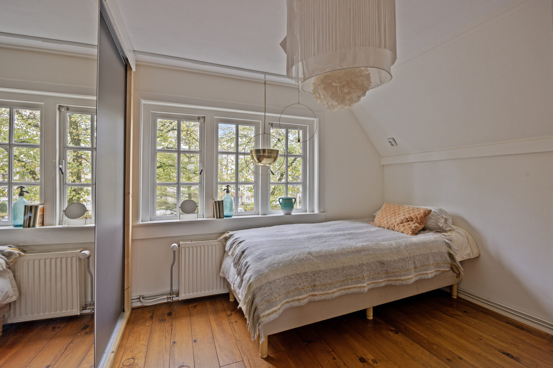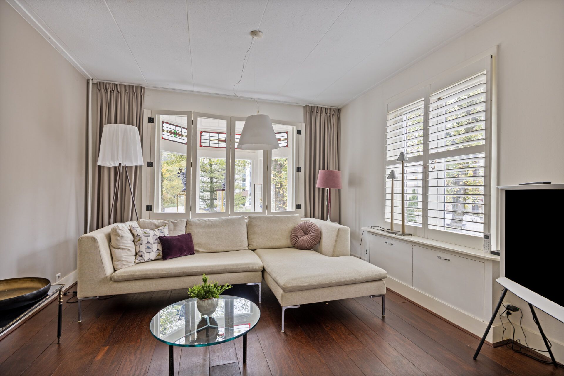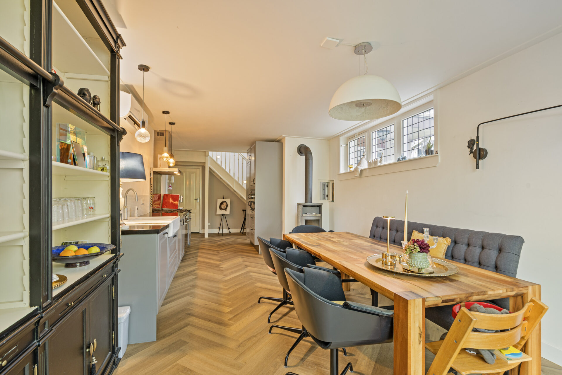 Op een rustige straat, op loopafstand van het centrum van Apeldoorn, staat dit karakteristieke geschakelde herenhuis. De woning combineert authentieke details met modern wooncomfort. Zo heeft de woonkamer prachtige glas-in-loodramen die zorgen voor een unieke lichtinval en sfeervolle uitstraling. In de entree/hal bevindt zich een karakteristieke trap. Daarnaast beschikt de woning over een moderne woonkeuken, luxe sanitair, een comfortabele speksteen houtkachel op de begane grond en duurzame voorzieningen zoals zes zonnepanelen. Ook is er airconditioning aanwezig in de woning voor extra comfort gedurende het hele jaar.