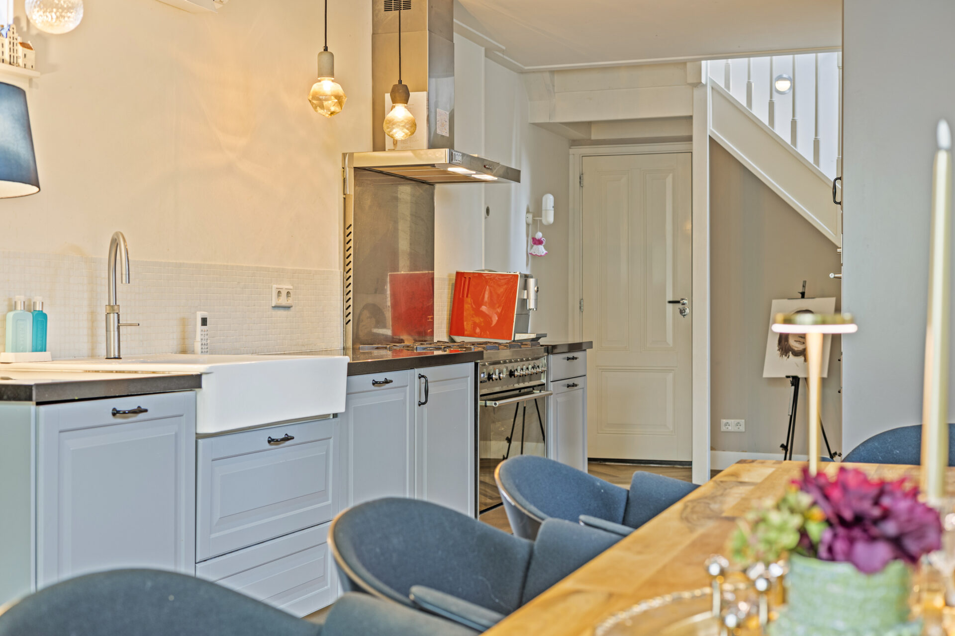 De woning is met oog voor detail afgewerkt en voorzien van hoogwaardige materialen. Op de begane grond ligt een stijlvolle bamboe visgraatvloer, de eerste verdieping heeft een warme hardhouten vloer, en op de tweede verdieping is gekozen voor grenenhout, wat bijdraagt aan de authentieke en sfeervolle uitstraling van het huis.