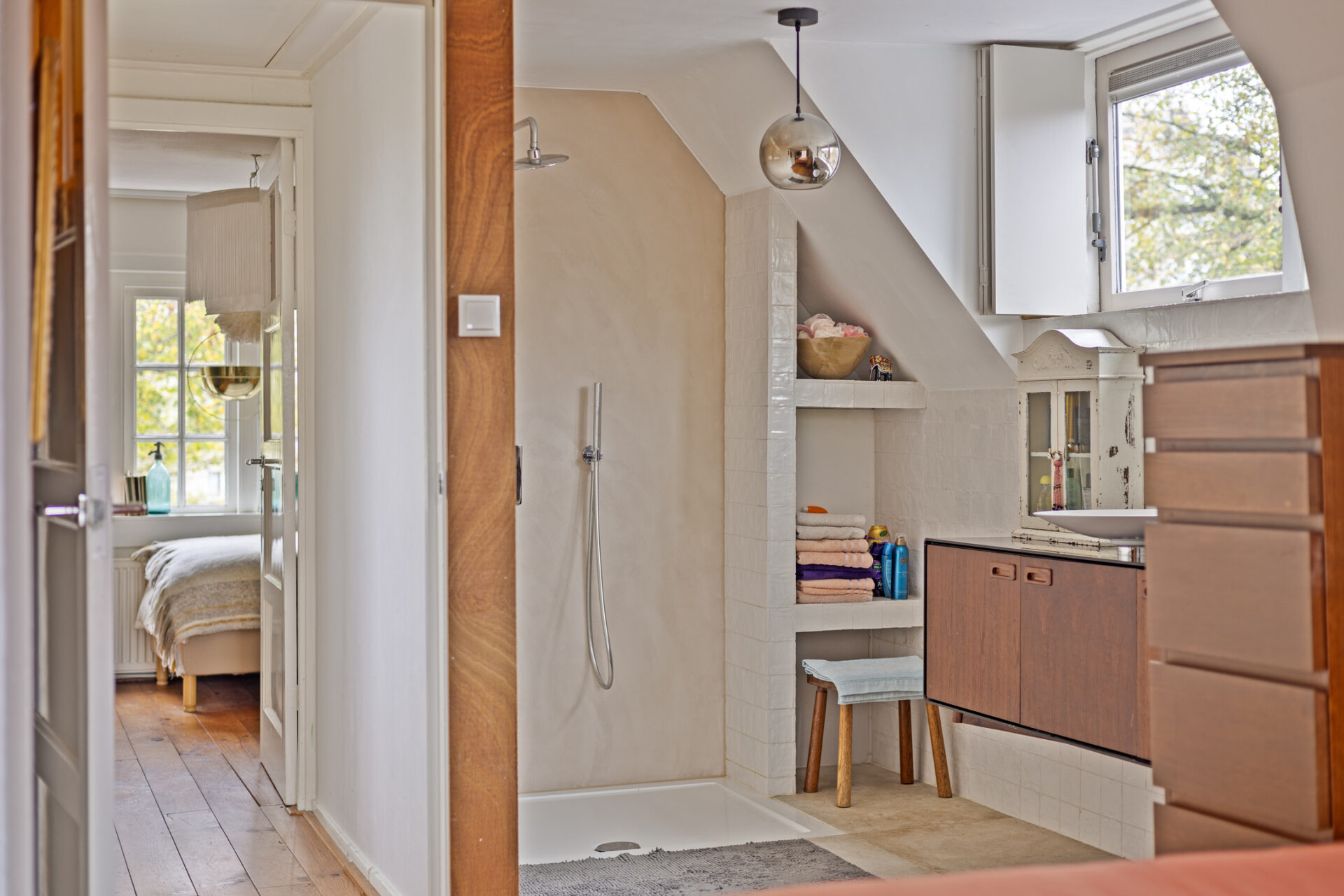 Entree/hal met toiletruimte, wasruimte en berging. De moderne woonkeuken is voorzien van diverse inbouwapparatuur, waaronder een Quooker en een 6-pits Smeg fornuis. Op deze verdieping bevindt zich tevens een comfortabele speksteen houtkachel die zorgt voor een warme en gezellige sfeer. Vanuit de woonkeuken is de voortuin toegankelijk.