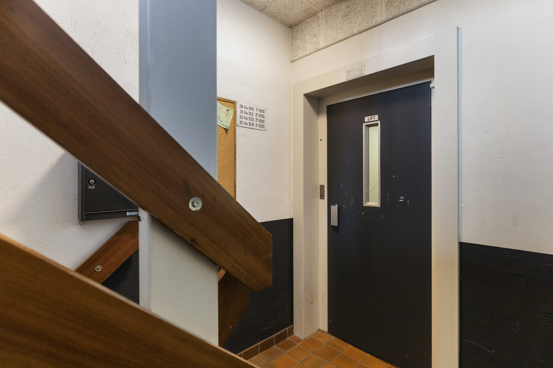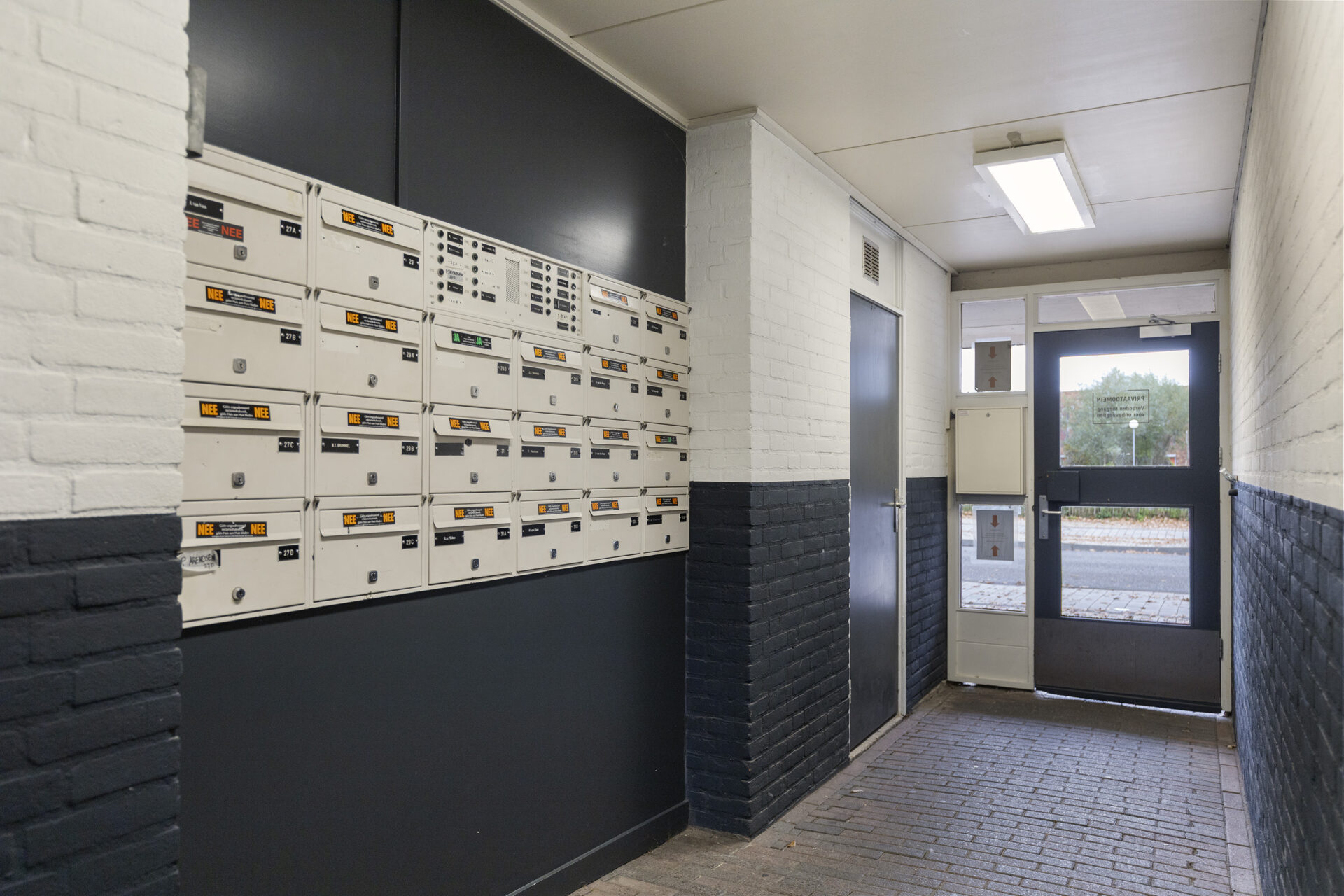 Begane grond: afgesloten entree met intercom installatie, brievenbussen, lift en trappenhuis.
