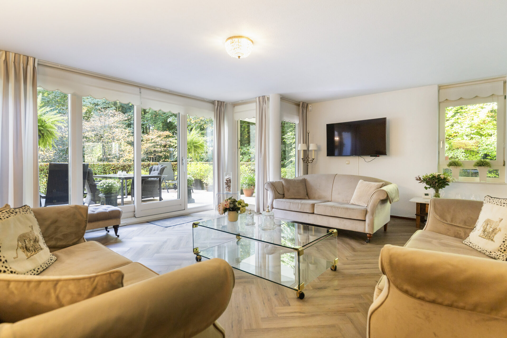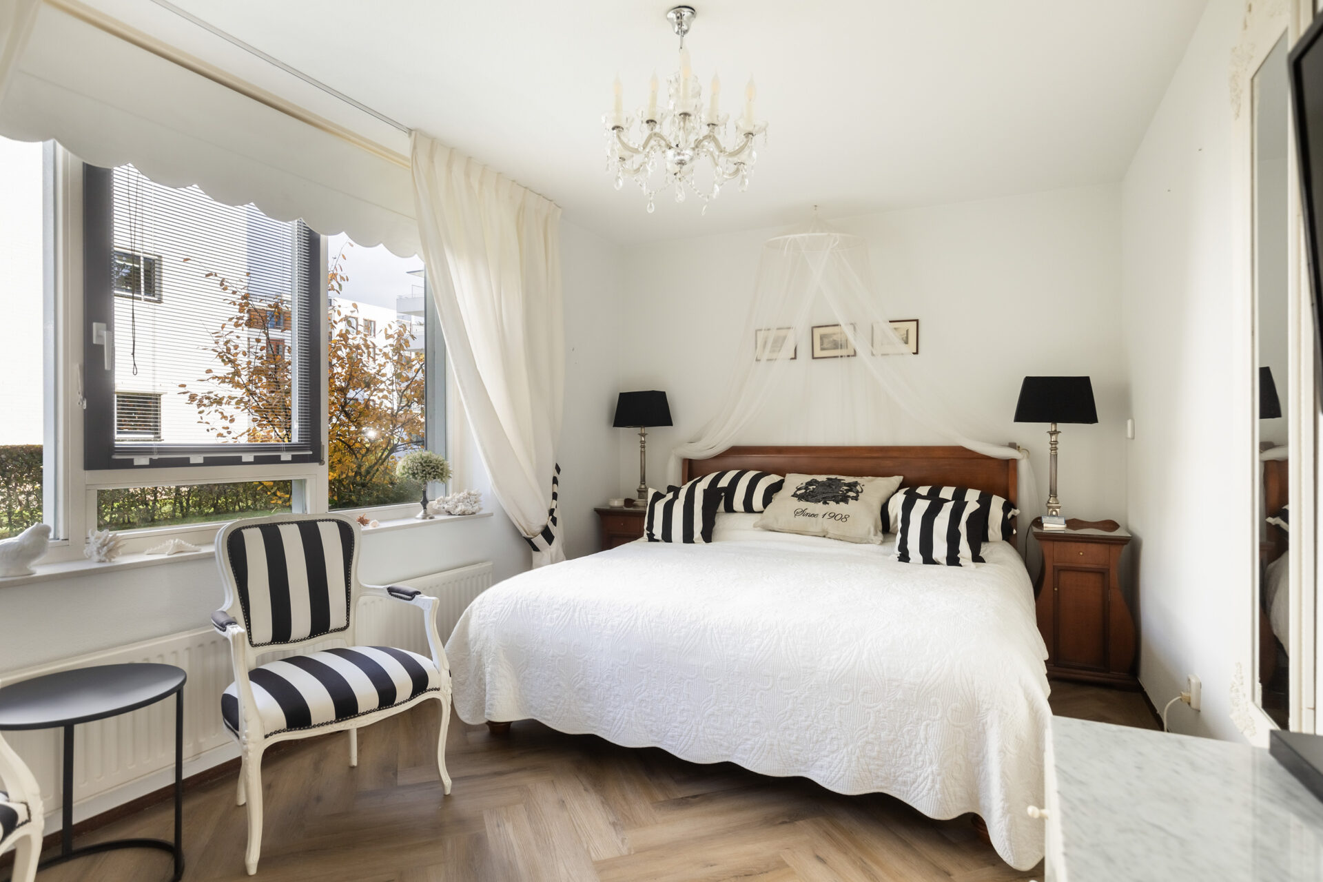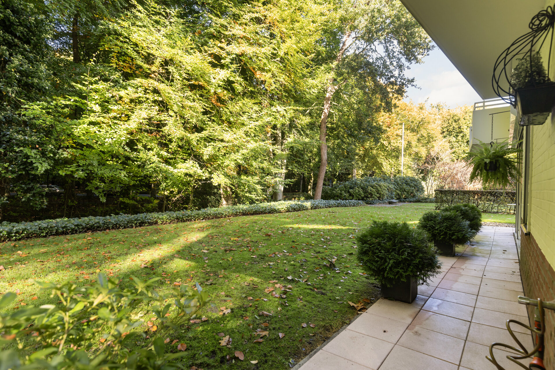 Het appartement zelf is ruim opgezet en beschikt over grote raampartijen die zorgen voor een prettig uitzicht op het groen. De ramen zijn voorzien van rolluiken en zonwering, wat zorgt voor extra comfort en privacy. Daarnaast beschikt de woning over een riant terras, waar u heerlijk kunt genieten van de groene omgeving.
