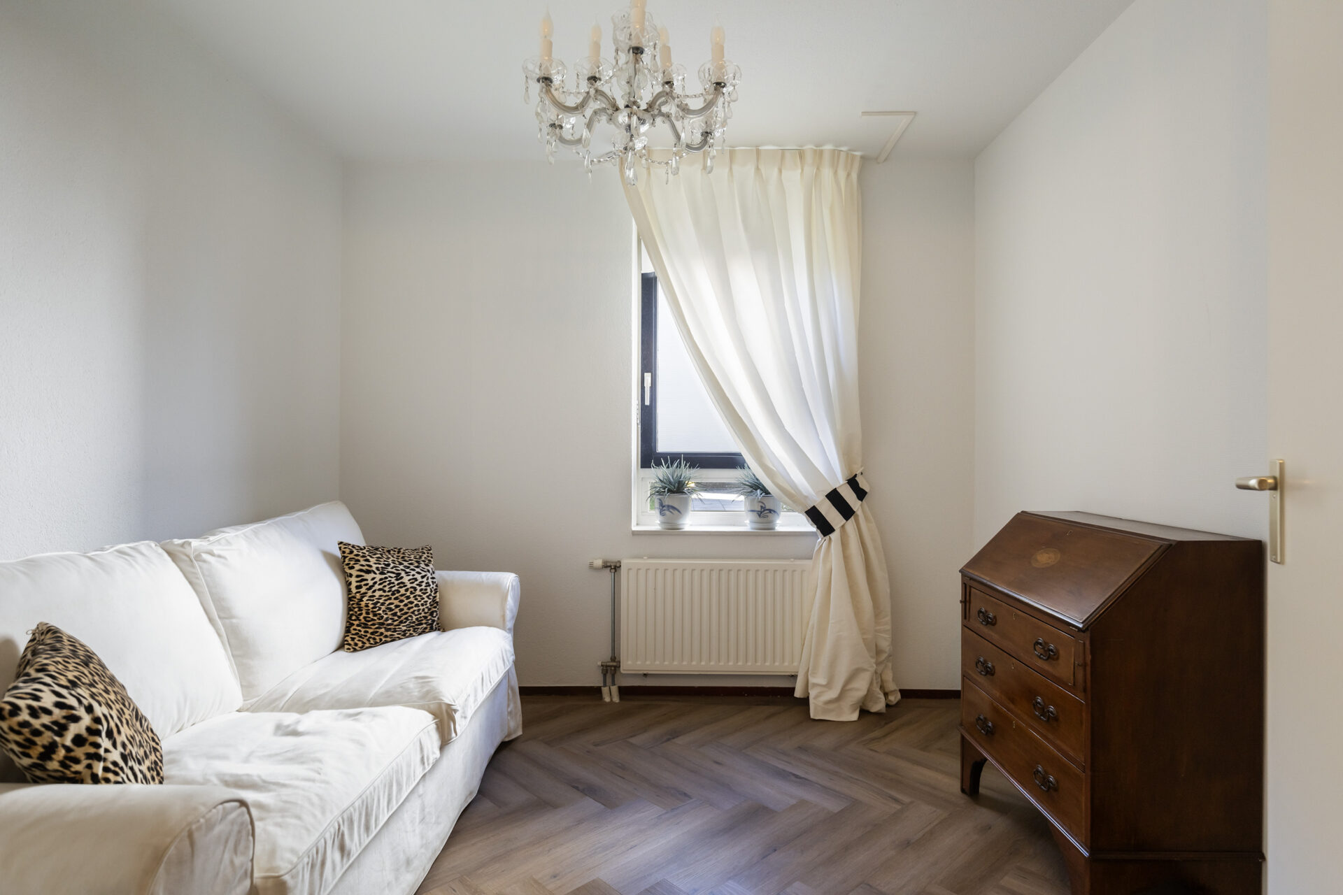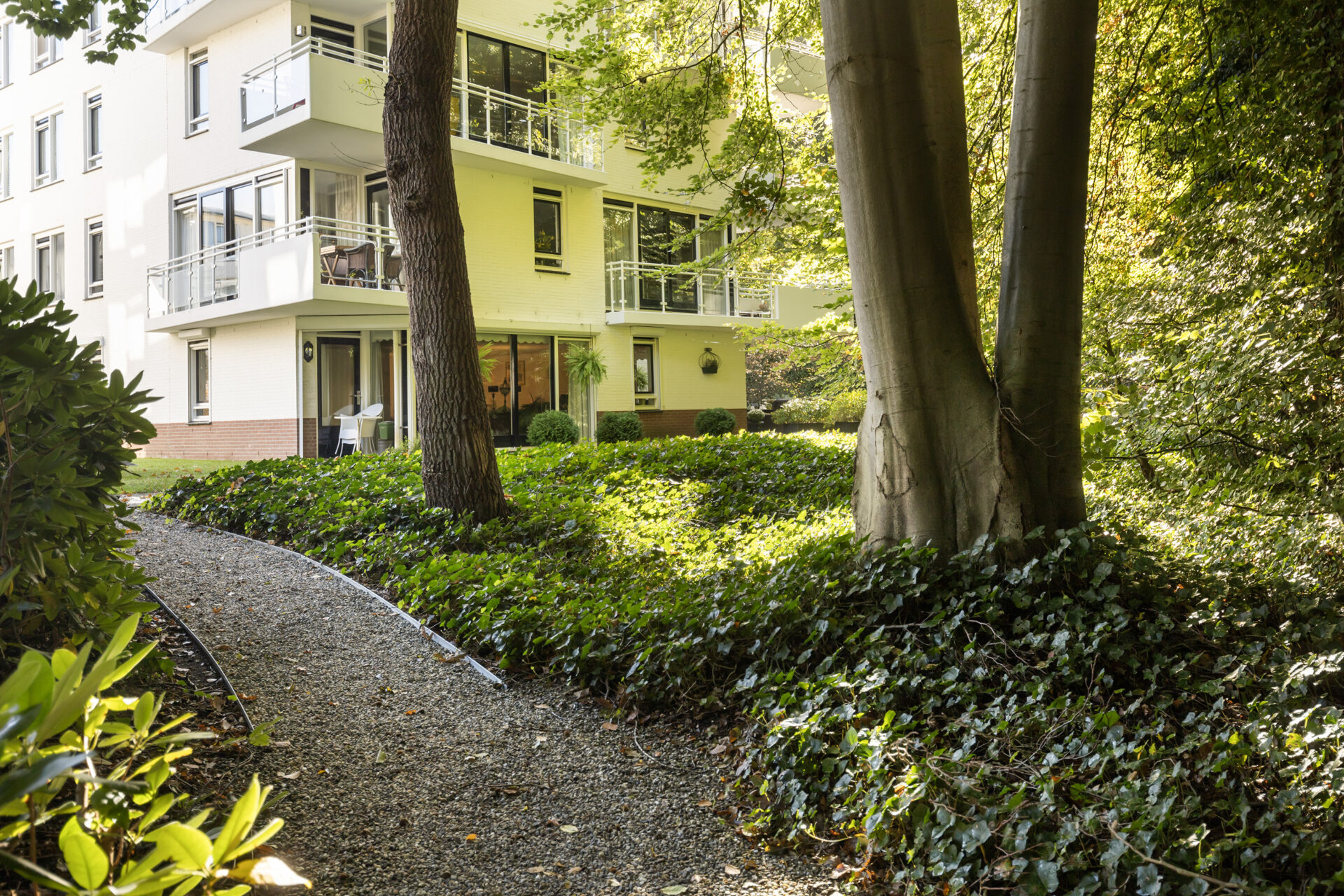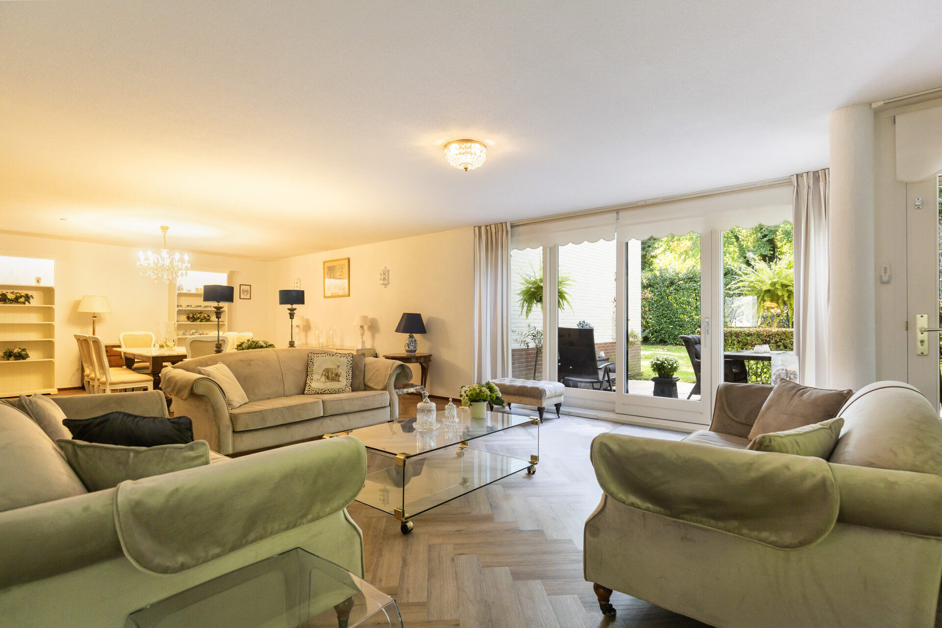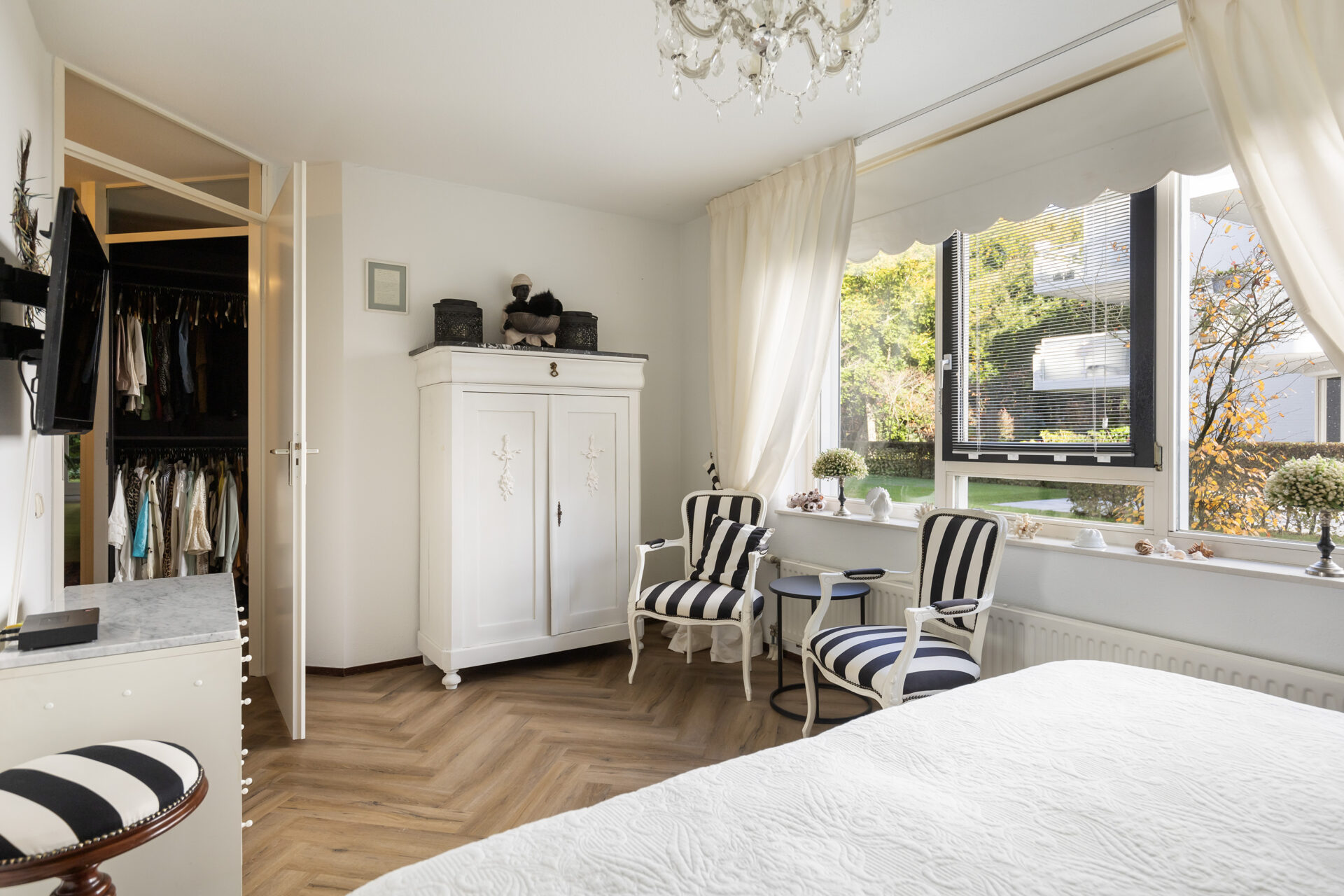 Het appartement zelf is ruim opgezet en beschikt over grote raampartijen die zorgen voor een prettig uitzicht op het groen. De ramen zijn voorzien van rolluiken en zonwering, wat zorgt voor extra comfort en privacy. Daarnaast beschikt de woning over een riant terras, waar u heerlijk kunt genieten van de groene omgeving.