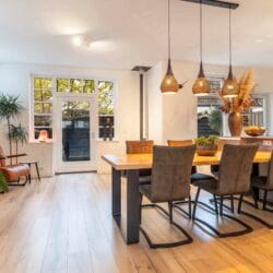 Groeneweg 2. Een uniek, karakteristiek en luxe afgewerkte half vrijstaande woning op geliefde locatie aan de Groeneweg in Apeldoorn-West. Een woning waar je binnenkomt met een wauw factor! In 2019/2020 volledig gerenoveerd en opnieuw opgebouwd. Vrijwel compleet geïsoleerd: daken, muren en de verdiepingsvloer. De beglazing in de woonkamer gedeelte is HR+++ (!) en in de overige ruimtes HR++. Er zijn 7 zonnepanelen aanwezig (385WP per paneel) en er zijn 2 airco units aanwezig (in beide slaapkamers 1). Tevens is de elektrische installatie vernieuwd en is er vloerverwarming aangebracht op de begane grond. De keuken, badkamer, toilet en verdere algehele afwerking is tot slot ook allemaal nieuw aangelegd in 2019/2020.
