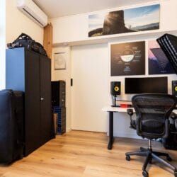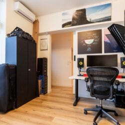 Begane grond: ruime entree met mogelijkheid tot het plaatsen van een grote kast voor opslag/garderobe. Direct aan de rechterzijde een slaapkamer c.q. werkkamer op de begane grond van goed formaat (voorzien van airco en een handige en fraaie schuifdeur). Toegang tot het moderne toilet voorzien van zwevend toilet, fontein en urinoir. Naast het toilet is de C.V-ketel installatie (Remeha, 2019, eigendom) opgesteld in een inpandige kastruimte. Bijzonder fraaie binnenloop in de woonkamer (voormalig garage). De vele raampartijen (voorzien van HR+++ beglazing), het strakke stucwerk en de zeer prettige connectie met de woonkamer zorgen voor een heerlijke binnenkomer in deze ruimte.