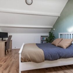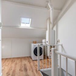 Tweede verdieping: zeer ruime overloop met o.a. de C.V.-ketel en wasmachine opstelling. Op de overloop zit een dakraam waardoor er natuurlijk lichtinval is. Opslagruimte achter schotten. Vierde zeer ruime slaapkamer, voorzien van groot dakraam en aan weerszijden wederom opslagruimte achter schotten.