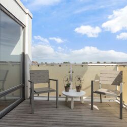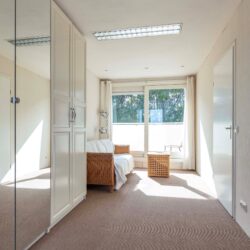 Tweede verdieping: ruime overloop met aan de voorzijde een grote bergkast met onder andere de wasmachine opstelling. Wederom 2 forse slaapkamers aanwezig en 2 balkons (achterzijde op het noordoosten en voorzijde op het zuidwesten).