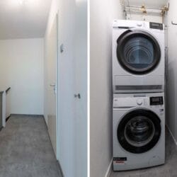 Vierde woonlaag: trapopgang vanuit de hal op de derde verdieping. Overloop met toegang tot de badkamer voorzien van inloopdouche, designradiator en wastafelmeubel. Naastgelegen ruime berging met onder andere de aansluiting voor wasmachine. Zeer royale slaapkamer aan de voorzijde met inbouwkast en toegang tot het tweede balkon.
