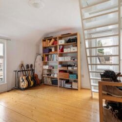 Tweede verdieping: Vanuit de grote slaapkamer aan de achterzijde is de 2e verdieping bereikbaar. Deze is thans in gebruik als opslagruimte/vliering (hoogte 1.67m). Overigens is deze verdiepingsvloer in 2021 geïsoleerd.