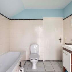 Eerste verdieping: Ruime overloop met toegang tot 3 slaapkamers. 2 slaapkamers aan de voorzijde en 1 aan de achterzijde. De badkamer is aan de achterzijde gelegen en voorzien van douche, ligbad, wastafelmeubel en toilet. De badkamer beschikt over vloerverwarming.