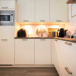 Appartement: op de 2e verdieping betreedt je het appartement in de lichte hal. De hal geeft je direct toegang tot de diverse vertrekken. In de hal zit de meterkast alsmede een ruime en handige bergkast met C.V.-ketel opstelling. De woonkamer is voorzien van grote raampartijen en veel lichtinval en er ligt een prachtige PVC vloer door het gehele appartement. Er is voldoende ruimte voor een zithoek en een eethoek. De moderne keuken is ingericht met een licht keukenmeubel in een hoekopstelling, een 4-pits gaskookplaat, een afzuigkap, een combimagnetron, een koelkast en een vaatwasser. Er is genoeg opbergruimte voor je keukengerei.
