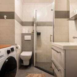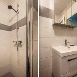 De twee slaapkamers liggen aan zijkant en de achterzijde van het appartement; deze zijn voorzien van lichte wanden en een prettige lichtinval. De moderne badkamer is volledig betegeld, mooi op elkaar afgestemd en ingericht met een hoekdouche, een wastafelmeubel, een spiegelkast met verlichting, een designradiator en een wandcloset. De witgoedaansluitingen bevinden zich ook in de badkamer.
