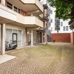 Buiten: aan de galerijzijde is het balkon gesitueerd en parkeren kan middels een parkeervergunning in de nabij gelegen parkeergarage Koningshaven.